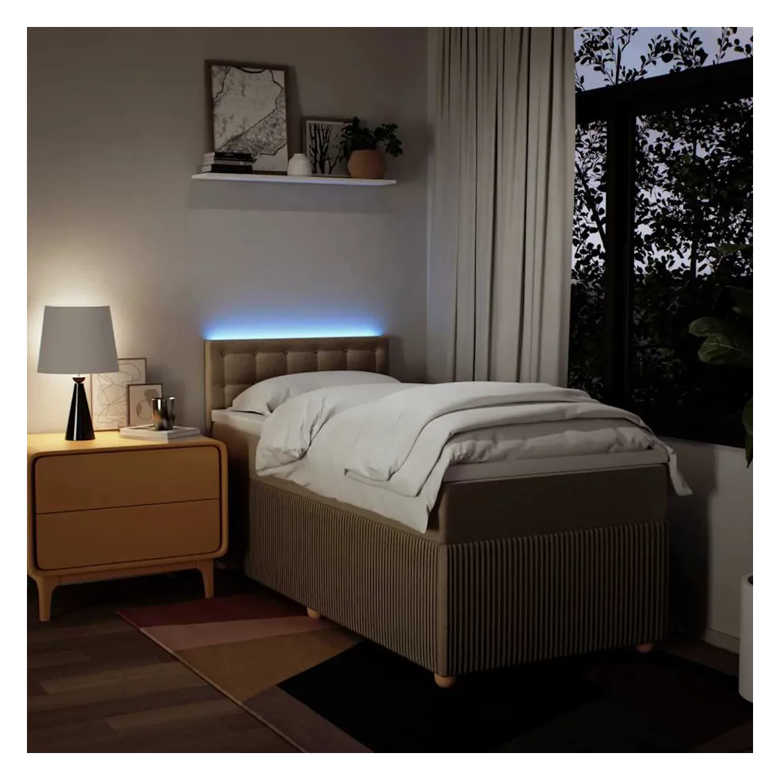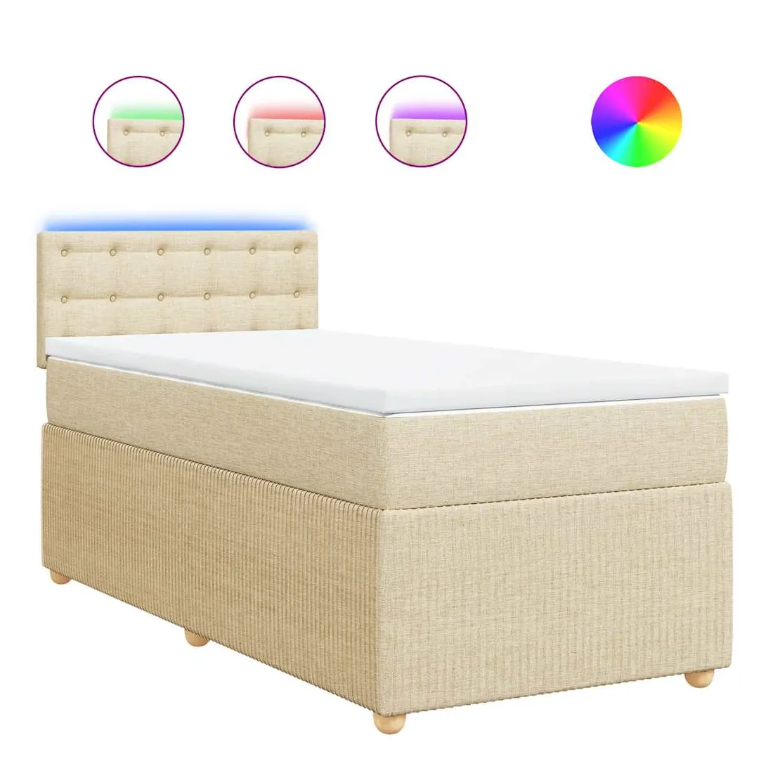 Utilisez ce lit à sommier pour profiter d'une nuit de sommeil réparatrice ! Il vous offre une relaxation maximale et un sommeil agréable. Matériau doux et durable : le tissu en polyester allie douceur, respirabilité et durabilité, vous garantissant un confort et une convivialité ultimes.Matelas à ressorts ensachés : ce matelas à ressorts ensachés comporte des ressorts ensachés individuels qui fonctionnent indépendamment pour offrir un soutien personnalisé en réagissant uniquement à la pression exercée dans chaque zone. Cette conception empêche « l'enroulement » et réduit le transfert de mouvement par rapport aux matelas traditionnels à ressorts ouverts. Chaque ressort ensaché soutient le corps individuellement.Lumières LED pour une ambiance agréable : ce lit est équipé de lumières LED qui peuvent être facilement réglées pour créer un spectacle lumineux personnalisé. Vous pouvez personnaliser les modes, les couleurs et la luminosité pour améliorer l'ambiance de votre espace intérieur.Surmatelas confortable : ce surmatelas améliore le soutien et le confort grâce à sa surface douce et respirante, tout en prolongeant la durée de vie de votre matelas. Sa housse amovible permet un lavage facile, ce qui facilite l'entretien. Bon à savoir :Ce produit est doté d'un connecteur USB qui nécessite une source d'alimentation USB de 5V certifiée (non incluse).Pour des raisons d'hygiène, le matelas ne peut pas être retourné si l'emballage est retiré ou ouvert.Seule la partie avec un symbole de ciseaux peut être coupée et seule la partie avec l'USB continuera à fonctionner comme avant.