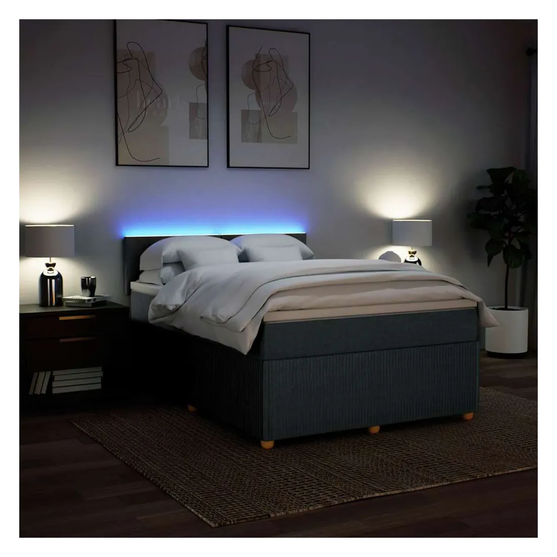 Utilisez ce lit à sommier pour profiter d'une nuit de sommeil réparatrice ! Il vous offre une relaxation maximale et un sommeil agréable. Matériau doux et durable : le tissu en polyester allie douceur, respirabilité et durabilité, vous garantissant un confort et une convivialité ultimes.Matelas à ressorts ensachés : ce matelas à ressorts ensachés comporte des ressorts ensachés individuels qui fonctionnent indépendamment pour offrir un soutien personnalisé en réagissant uniquement à la pression exercée dans chaque zone. Cette conception empêche « l'enroulement » et réduit le transfert de mouvement par rapport aux matelas traditionnels à ressorts ouverts. Chaque ressort ensaché soutient le corps individuellement.Lumières LED pour une ambiance agréable : ce lit est équipé de lumières LED qui peuvent être facilement réglées pour créer un spectacle lumineux personnalisé. Vous pouvez personnaliser les modes, les couleurs et la luminosité pour améliorer l'ambiance de votre espace intérieur.Surmatelas confortable : ce surmatelas améliore le soutien et le confort grâce à sa surface douce et respirante, tout en prolongeant la durée de vie de votre matelas. Sa housse amovible permet un lavage facile, ce qui facilite l'entretien. Bon à savoir :Ce produit est doté d'un connecteur USB qui nécessite une source d'alimentation USB de 5V certifiée (non incluse).Pour des raisons d'hygiène, le matelas ne peut pas être retourné si l'emballage est retiré ou ouvert.Seule la partie avec un symbole de ciseaux peut être coupée et seule la partie avec l'USB continuera à fonctionner comme avant.