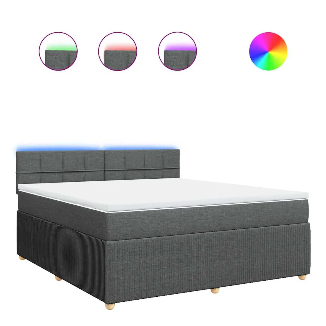 Utilisez ce lit à sommier pour profiter d'une nuit de sommeil réparatrice ! Il vous offre une relaxation maximale et un sommeil agréable. Matériau doux et durable : le tissu en polyester allie douceur, respirabilité et durabilité, vous garantissant un confort et une convivialité ultimes.Matelas à ressorts ensachés : ce matelas à ressorts ensachés comporte des ressorts ensachés individuels qui fonctionnent indépendamment pour offrir un soutien personnalisé en réagissant uniquement à la pression exercée dans chaque zone. Cette conception empêche « l'enroulement » et réduit le transfert de mouvement par rapport aux matelas traditionnels à ressorts ouverts. Chaque ressort ensaché soutient le corps individuellement.Lumières LED pour une ambiance agréable : ce lit est équipé de lumières LED qui peuvent être facilement réglées pour créer un spectacle lumineux personnalisé. Vous pouvez personnaliser les modes, les couleurs et la luminosité pour améliorer l'ambiance de votre espace intérieur.Surmatelas confortable : ce surmatelas améliore le soutien et le confort grâce à sa surface douce et respirante, tout en prolongeant la durée de vie de votre matelas. Sa housse amovible permet un lavage facile, ce qui facilite l'entretien. Bon à savoir :Ce produit est doté d'un connecteur USB qui nécessite une source d'alimentation USB de 5V certifiée (non incluse).Pour des raisons d'hygiène, le matelas ne peut pas être retourné si l'emballage est retiré ou ouvert.Seule la partie avec un symbole de ciseaux peut être coupée et seule la partie avec l'USB continuera à fonctionner comme avant.