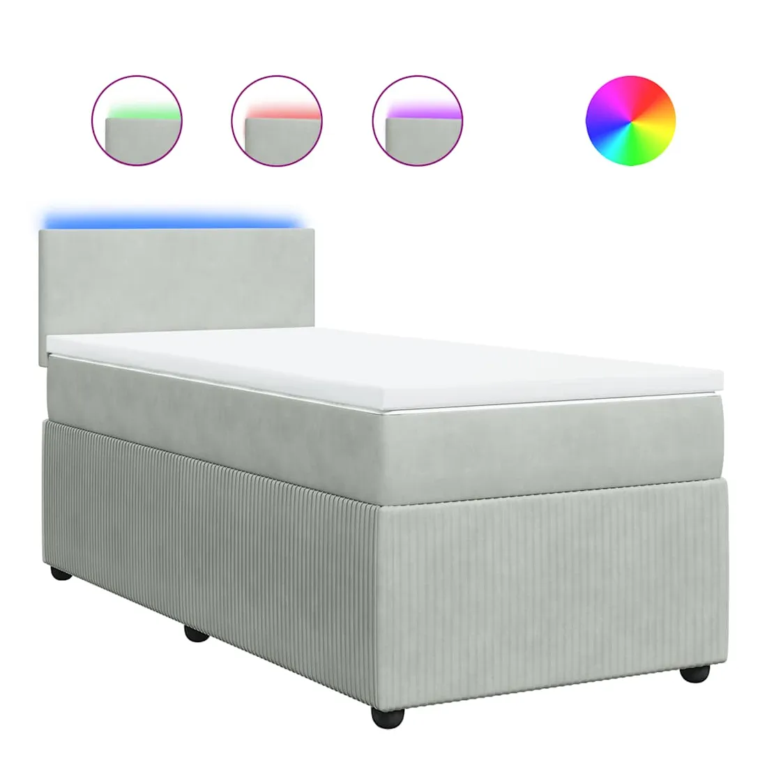 Utilisez ce lit à sommier pour profiter d'une nuit de sommeil réparatrice ! Il vous offre une relaxation maximale et un sommeil agréable. Matériau doux et confortable : le tissu en velours présente une surface douce et lisse qui offre une sensation agréable contre la peau, vous apportant chaleur et confort ultime.Matelas à ressorts ensachés : ce matelas à ressorts ensachés comporte des ressorts ensachés individuels qui fonctionnent indépendamment pour offrir un soutien personnalisé en réagissant uniquement à la pression exercée dans chaque zone. Cette conception empêche « l'enroulement » et réduit le transfert de mouvement par rapport aux matelas traditionnels à ressorts ouverts. Chaque ressort ensaché soutient le corps individuellement.Lumières LED pour une ambiance agréable : ce lit est équipé de lumières LED qui peuvent être facilement réglées pour créer un spectacle lumineux personnalisé. Vous pouvez personnaliser les modes, les couleurs et la luminosité pour améliorer l'ambiance de votre espace intérieur.Surmatelas confortable : ce surmatelas améliore le soutien et le confort grâce à sa surface douce et respirante, tout en prolongeant la durée de vie de votre matelas. Sa housse amovible permet un lavage facile, ce qui facilite l'entretien. Bon à savoir :Ce produit est doté d'un connecteur USB qui nécessite une source d'alimentation USB de 5V certifiée (non incluse).Pour des raisons d'hygiène, le matelas ne peut pas être retourné si l'emballage est retiré ou ouvert.Seule la partie avec un symbole de ciseaux peut être coupée et seule la partie avec l'USB continuera à fonctionner comme avant.
