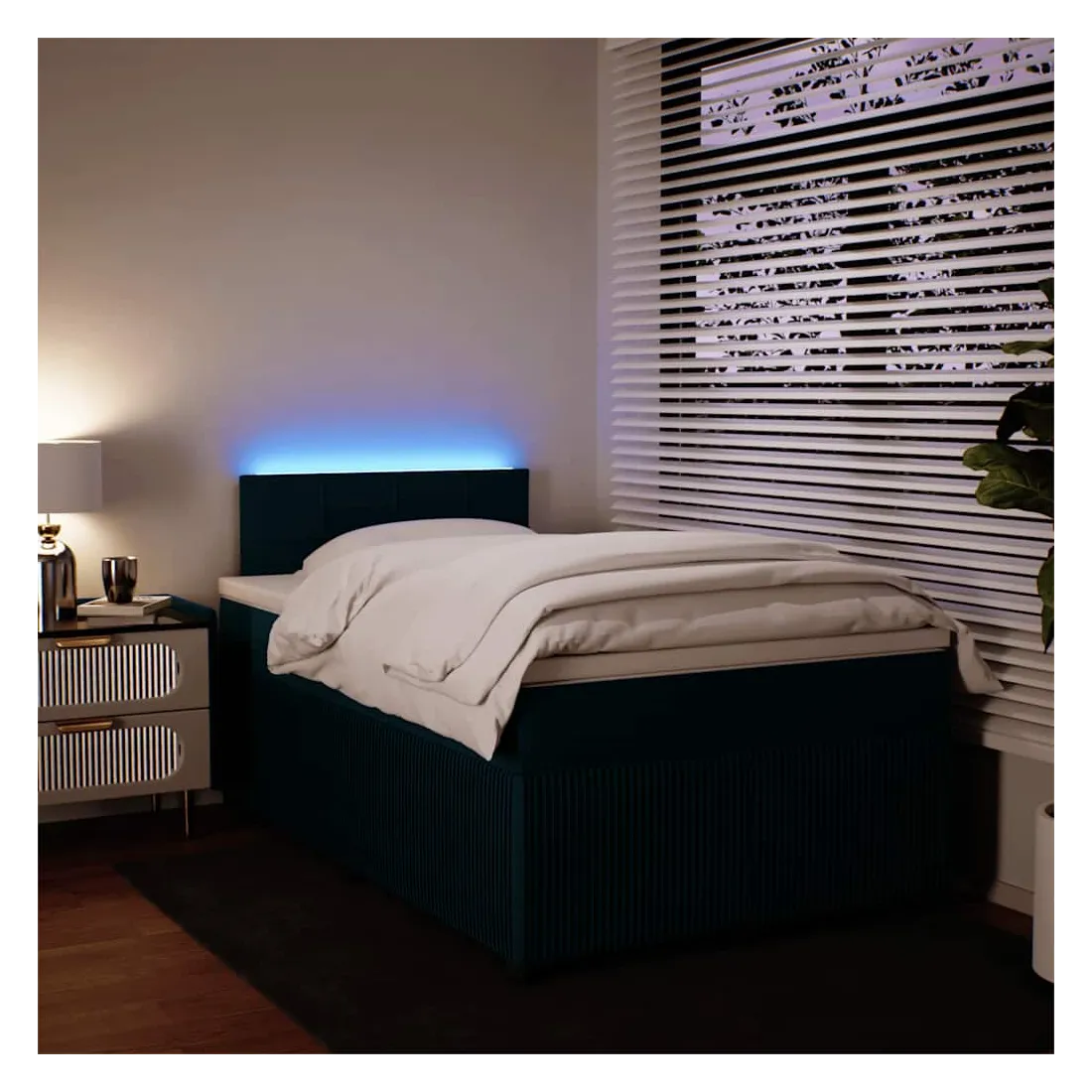 Utilisez ce lit à sommier pour profiter d'une nuit de sommeil réparatrice ! Il vous offre une relaxation maximale et un sommeil agréable. Matériau doux et confortable : le tissu en velours présente une surface douce et lisse qui offre une sensation agréable contre la peau, vous apportant chaleur et confort ultime.Matelas à ressorts ensachés : ce matelas à ressorts ensachés comporte des ressorts ensachés individuels qui fonctionnent indépendamment pour offrir un soutien personnalisé en réagissant uniquement à la pression exercée dans chaque zone. Cette conception empêche « l'enroulement » et réduit le transfert de mouvement par rapport aux matelas traditionnels à ressorts ouverts. Chaque ressort ensaché soutient le corps individuellement.Lumières LED pour une ambiance agréable : ce lit est équipé de lumières LED qui peuvent être facilement réglées pour créer un spectacle lumineux personnalisé. Vous pouvez personnaliser les modes, les couleurs et la luminosité pour améliorer l'ambiance de votre espace intérieur.Surmatelas confortable : ce surmatelas améliore le soutien et le confort grâce à sa surface douce et respirante, tout en prolongeant la durée de vie de votre matelas. Sa housse amovible permet un lavage facile, ce qui facilite l'entretien. Bon à savoir :Ce produit est doté d'un connecteur USB qui nécessite une source d'alimentation USB de 5V certifiée (non incluse).Pour des raisons d'hygiène, le matelas ne peut pas être retourné si l'emballage est retiré ou ouvert.Seule la partie avec un symbole de ciseaux peut être coupée et seule la partie avec l'USB continuera à fonctionner comme avant.