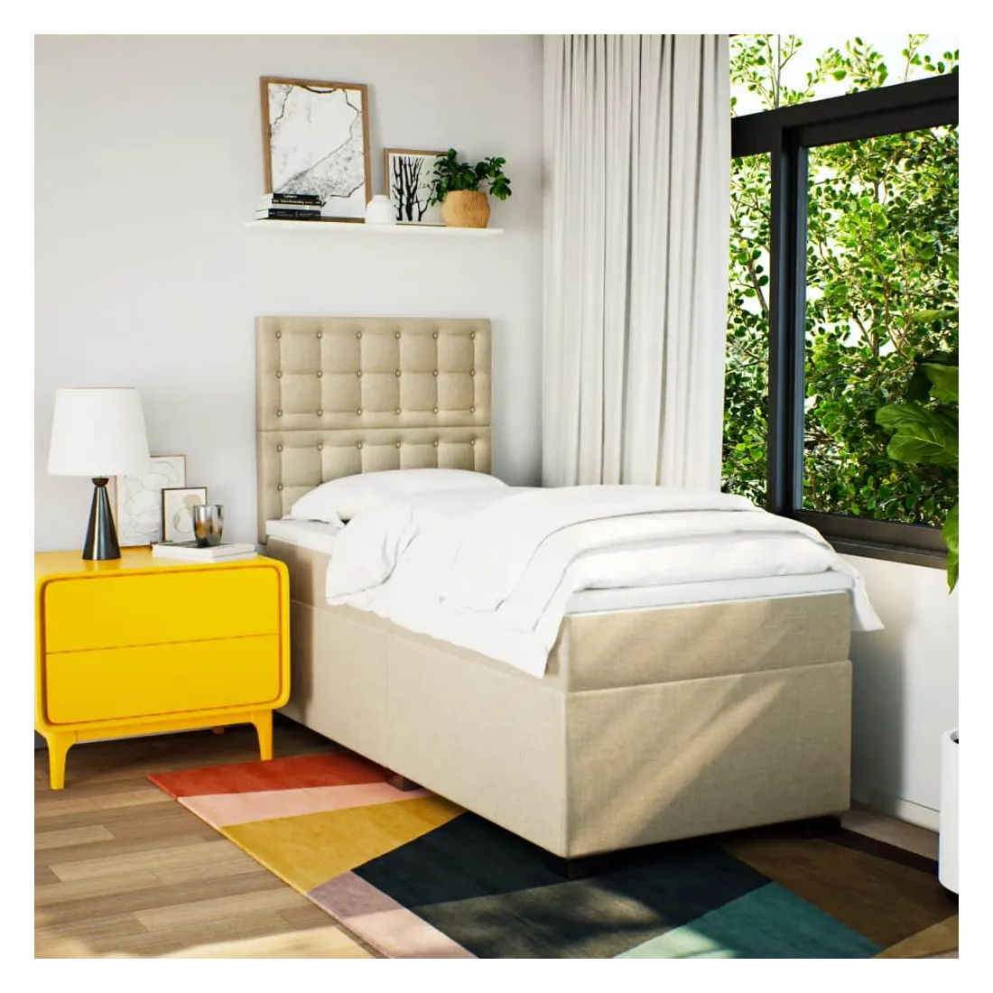 Utilisez ce lit à sommier pour profiter d'une nuit de sommeil réparatrice ! Il vous offre une relaxation maximale et un sommeil agréable. Matériau doux et durable : le tissu en polyester allie douceur, respirabilité et durabilité, vous garantissant un confort et une convivialité ultimes.Matelas à ressorts ensachés : ce matelas à ressorts ensachés comporte des ressorts ensachés individuels qui fonctionnent indépendamment pour offrir un soutien personnalisé en réagissant uniquement à la pression exercée dans chaque zone. Cette conception empêche « l'enroulement » et réduit le transfert de mouvement par rapport aux matelas traditionnels à ressorts ouverts. Chaque ressort ensaché soutient le corps individuellement.Tête de lit réglable en hauteur : la tête de lit est réglable en hauteur pour s'adapter à vos préférences.Surmatelas confortable : ce surmatelas améliore le soutien et le confort grâce à sa surface douce et respirante, tout en prolongeant la durée de vie de votre matelas. Sa housse amovible permet un lavage facile, ce qui facilite l'entretien.Lattes pour un soutien optimal : le cadre de lit est complété par des lattes pour offrir un soutien et une respirabilité essentiels à votre matelas. Bon à savoir :Pour des raisons d'hygiène, le matelas ne peut pas être retourné si l'emballage est retiré ou ouvert.
