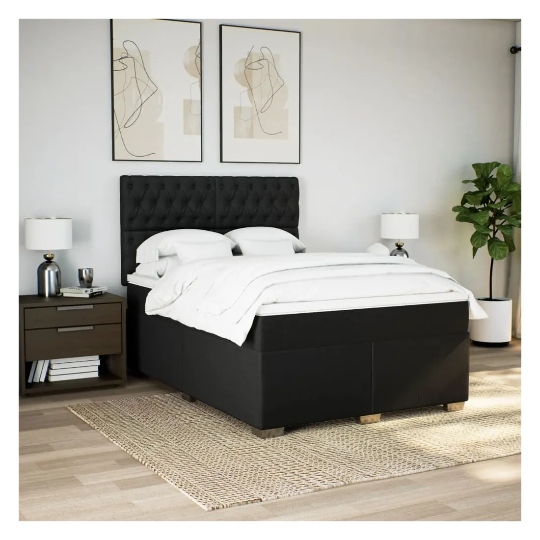 Sommier à lattes de lit avec matelas Noir 160x200 cm Tissu