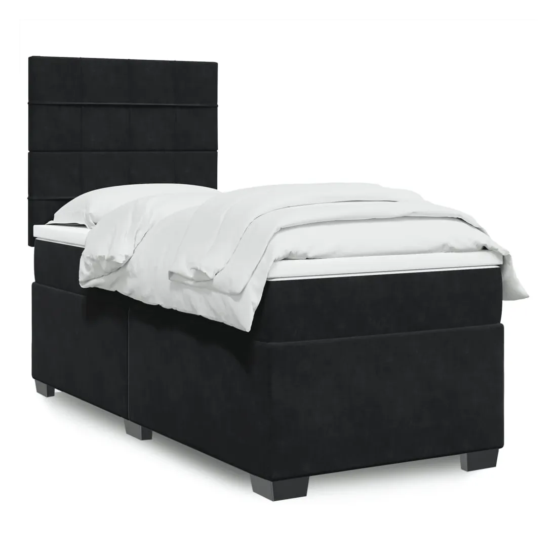 Utilisez ce lit à sommier pour profiter d'une nuit de sommeil réparatrice ! Il vous offre une relaxation maximale et un sommeil agréable. Matériau doux et confortable : le tissu en velours présente une surface douce et lisse qui offre une sensation agréable contre la peau, vous apportant chaleur et confort ultime.Matelas à ressorts ensachés : ce matelas à ressorts ensachés comporte des ressorts ensachés individuels qui fonctionnent indépendamment pour offrir un soutien personnalisé en réagissant uniquement à la pression exercée dans chaque zone. Cette conception empêche « l'enroulement » et réduit le transfert de mouvement par rapport aux matelas traditionnels à ressorts ouverts. Chaque ressort ensaché soutient le corps individuellement.Tête de lit réglable en hauteur : la tête de lit est réglable en hauteur pour s'adapter à vos préférences.Surmatelas confortable : ce surmatelas améliore le soutien et le confort grâce à sa surface douce et respirante, tout en prolongeant la durée de vie de votre matelas. Sa housse amovible permet un lavage facile, ce qui facilite l'entretien.Lattes pour un soutien optimal : le cadre de lit est complété par des lattes pour offrir un soutien et une respirabilité essentiels à votre matelas. Bon à savoir :Pour des raisons d'hygiène, le matelas ne peut pas être retourné si l'emballage est retiré ou ouvert.