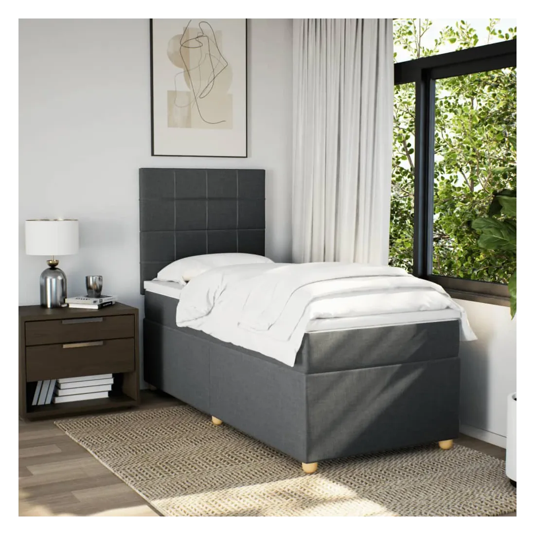 Utilisez ce lit à sommier pour profiter d'une nuit de sommeil réparatrice ! Il vous offre une relaxation maximale et un sommeil agréable. Matériau doux et durable : le tissu en polyester allie douceur, respirabilité et durabilité, vous garantissant un confort et une convivialité ultimes.Matelas à ressorts ensachés : ce matelas à ressorts ensachés comporte des ressorts ensachés individuels qui fonctionnent indépendamment pour offrir un soutien personnalisé en réagissant uniquement à la pression exercée dans chaque zone. Cette conception empêche « l'enroulement » et réduit le transfert de mouvement par rapport aux matelas traditionnels à ressorts ouverts. Chaque ressort ensaché soutient le corps individuellement.Tête de lit réglable en hauteur : la tête de lit est réglable en hauteur pour s'adapter à vos préférences.Surmatelas confortable : ce surmatelas améliore le soutien et le confort grâce à sa surface douce et respirante, tout en prolongeant la durée de vie de votre matelas. Sa housse amovible permet un lavage facile, ce qui facilite l'entretien.Lattes pour un soutien optimal : le cadre de lit est complété par des lattes pour offrir un soutien et une respirabilité essentiels à votre matelas. Bon à savoir :Pour des raisons d'hygiène, le matelas ne peut pas être retourné si l'emballage est retiré ou ouvert.