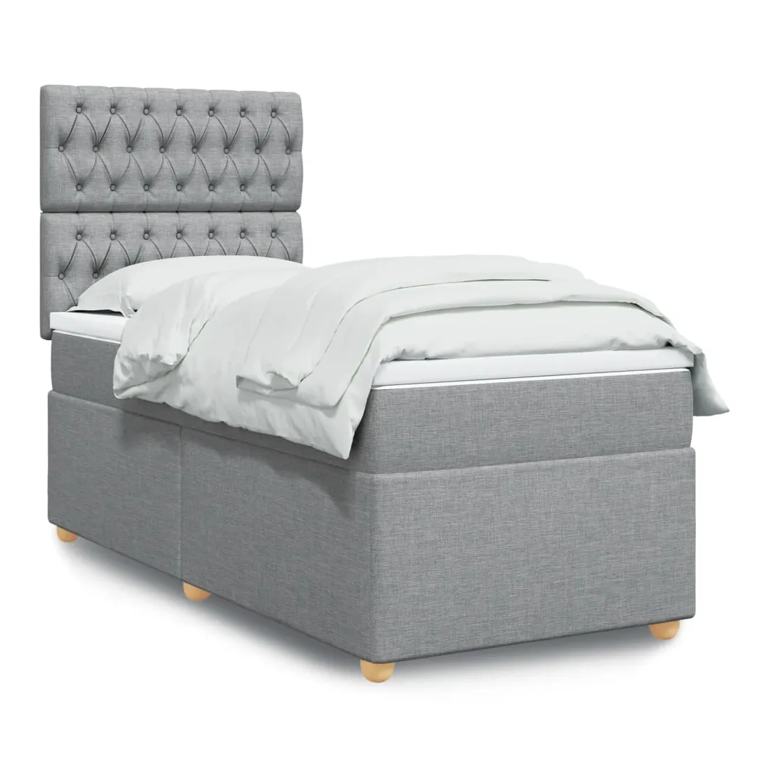 Utilisez ce lit à sommier pour profiter d'une nuit de sommeil réparatrice ! Il vous offre une relaxation maximale et un sommeil agréable. Matériau doux et durable : le tissu en polyester allie douceur, respirabilité et durabilité, vous garantissant un confort et une convivialité ultimes.Matelas à ressorts ensachés : ce matelas à ressorts ensachés comporte des ressorts ensachés individuels qui fonctionnent indépendamment pour offrir un soutien personnalisé en réagissant uniquement à la pression exercée dans chaque zone. Cette conception empêche « l'enroulement » et réduit le transfert de mouvement par rapport aux matelas traditionnels à ressorts ouverts. Chaque ressort ensaché soutient le corps individuellement.Tête de lit réglable en hauteur : la tête de lit est réglable en hauteur pour s'adapter à vos préférences.Surmatelas confortable : ce surmatelas améliore le soutien et le confort grâce à sa surface douce et respirante, tout en prolongeant la durée de vie de votre matelas. Sa housse amovible permet un lavage facile, ce qui facilite l'entretien.Lattes pour un soutien optimal : le cadre de lit est complété par des lattes pour offrir un soutien et une respirabilité essentiels à votre matelas. Bon à savoir :Pour des raisons d'hygiène, le matelas ne peut pas être retourné si l'emballage est retiré ou ouvert.