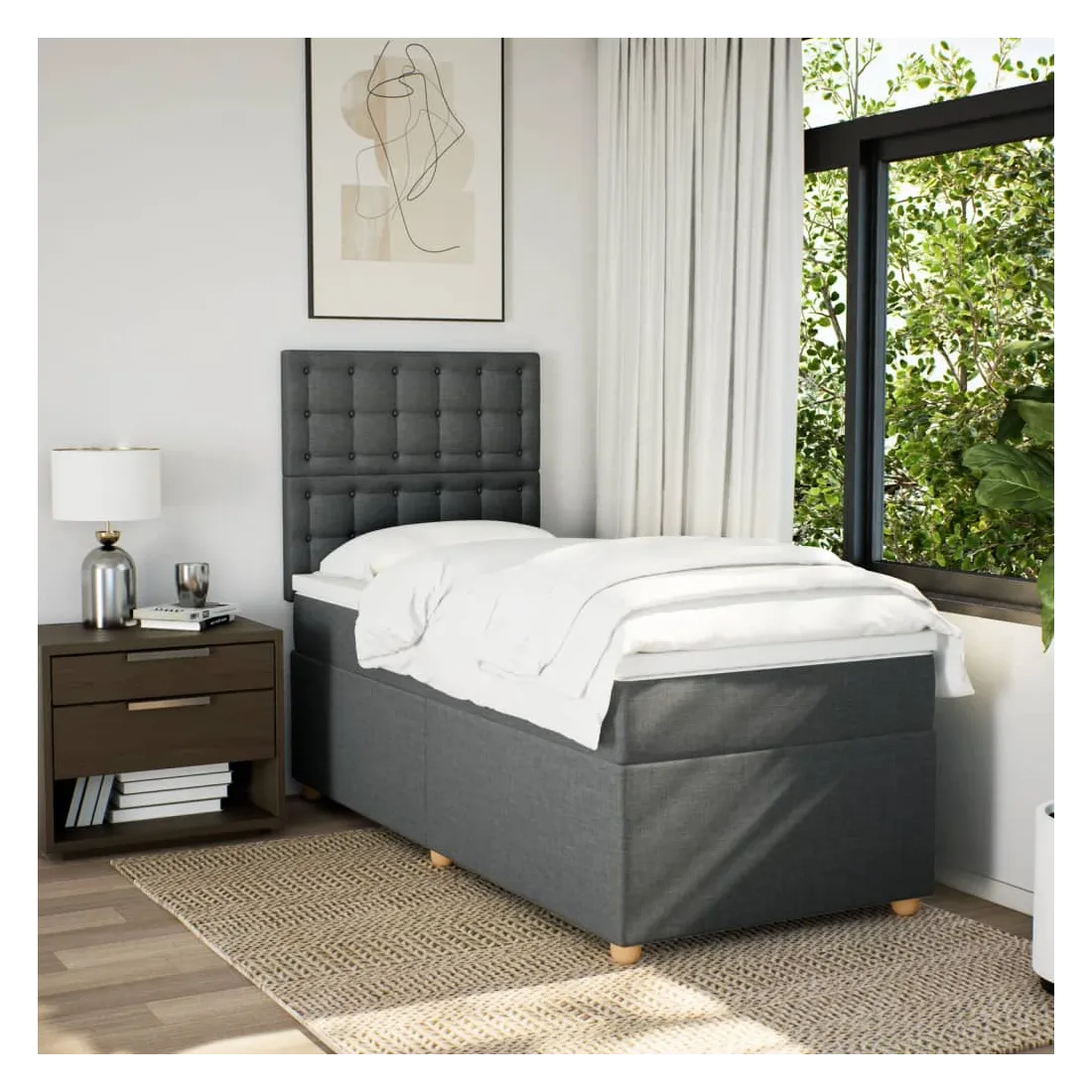 Utilisez ce lit à sommier pour profiter d'une nuit de sommeil réparatrice ! Il vous offre une relaxation maximale et un sommeil agréable. Matériau doux et durable : le tissu en polyester allie douceur, respirabilité et durabilité, vous garantissant un confort et une convivialité ultimes.Matelas à ressorts ensachés : ce matelas à ressorts ensachés comporte des ressorts ensachés individuels qui fonctionnent indépendamment pour offrir un soutien personnalisé en réagissant uniquement à la pression exercée dans chaque zone. Cette conception empêche « l'enroulement » et réduit le transfert de mouvement par rapport aux matelas traditionnels à ressorts ouverts. Chaque ressort ensaché soutient le corps individuellement.Tête de lit réglable en hauteur : la tête de lit est réglable en hauteur pour s'adapter à vos préférences.Surmatelas confortable : ce surmatelas améliore le soutien et le confort grâce à sa surface douce et respirante, tout en prolongeant la durée de vie de votre matelas. Sa housse amovible permet un lavage facile, ce qui facilite l'entretien.Lattes pour un soutien optimal : le cadre de lit est complété par des lattes pour offrir un soutien et une respirabilité essentiels à votre matelas. Bon à savoir :Pour des raisons d'hygiène, le matelas ne peut pas être retourné si l'emballage est retiré ou ouvert.