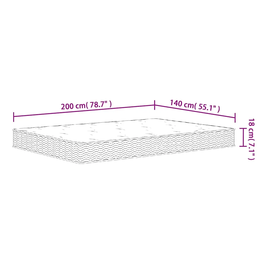 - Dimensions : 140 x 200 x 18 cm (l x L x é)