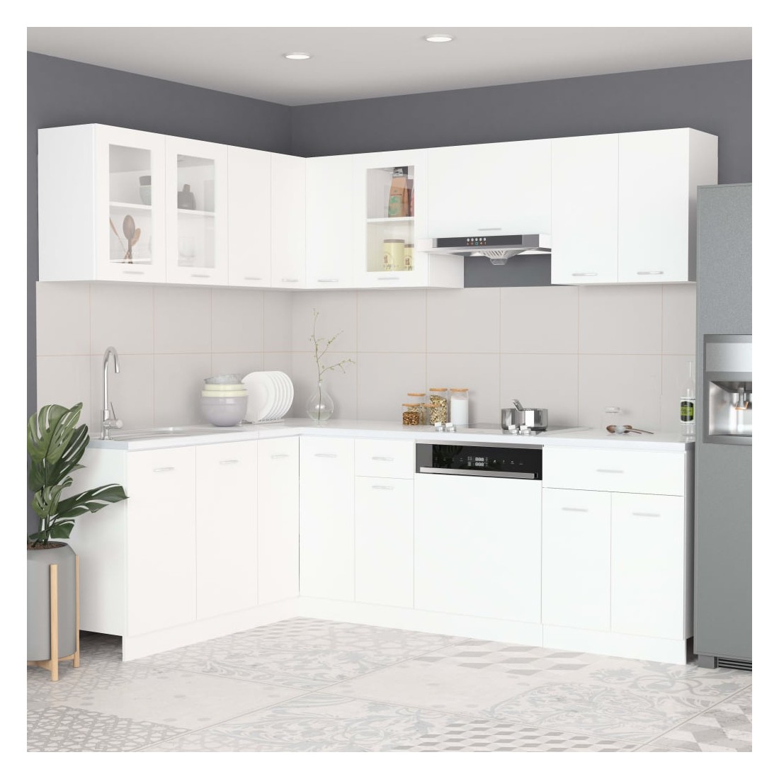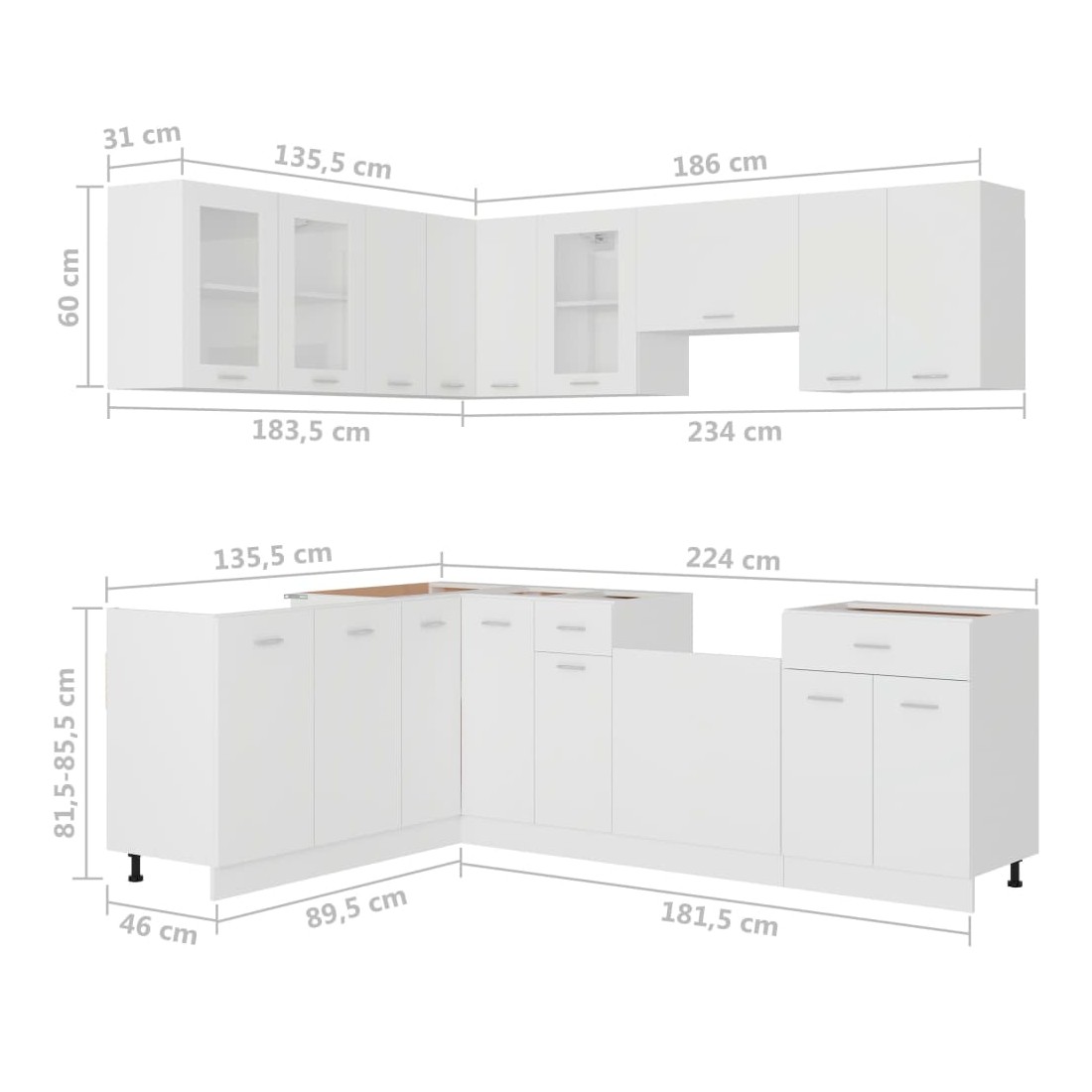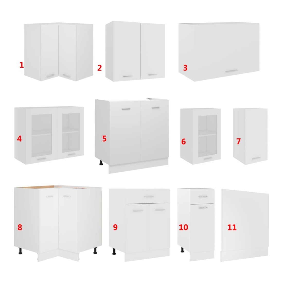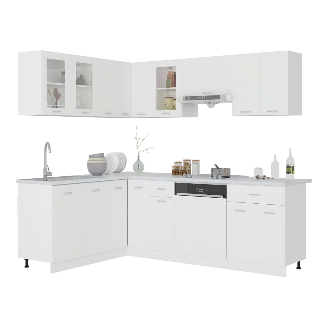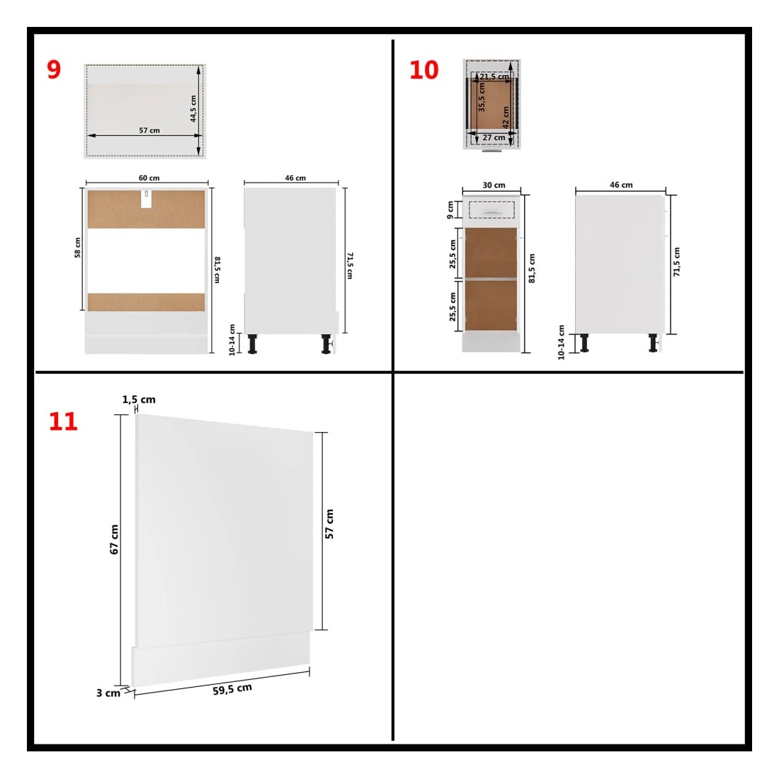 Cet ensemble de meubles de cuisine de 11 pièces, au design élégant, optimise votre espace de cuisine et offre un espace de rangement suffisant pour vos effets personnels ! Ces armoires sont durables et fonctionnelles, ce qui permet de mieux organiser votre cuisine. Elles offrent également suffisamment d’espace pour stocker des bols, des assiettes, des casseroles et d’autres appareils de cuisine. Le panneau de lave-vaisselle présente un design simple et peut protéger le lave-vaisselle. En outre, cet ensemble est facile à nettoyer avec un chiffon humide. Veuillez noter que le plan de travail, le robinet, l'évier et les appareils électriques ne sont pas inclus dans la livraison.