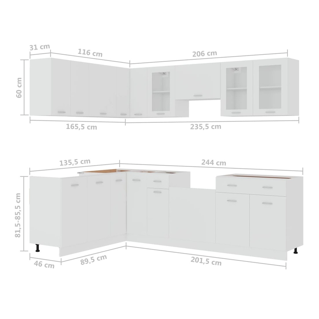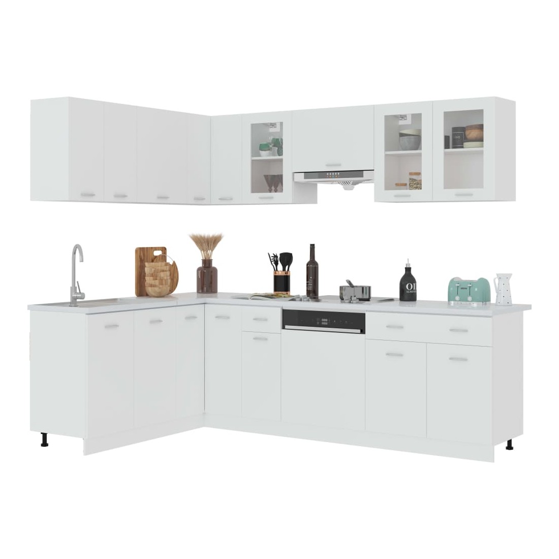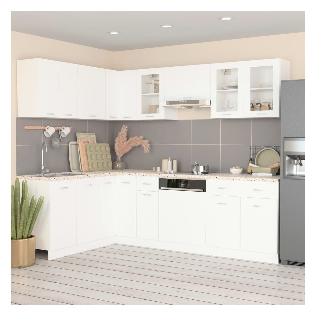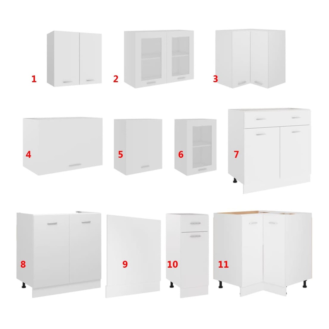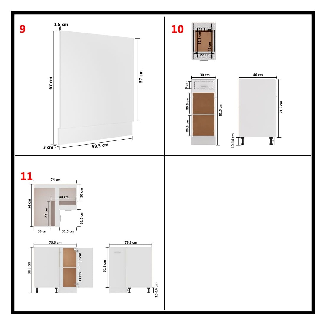 Cet ensemble de meubles de cuisine de 11 pièces, au design élégant, optimise votre espace de cuisine et offre un espace de rangement suffisant pour vos effets personnels ! Ces armoires sont durables et fonctionnelles, ce qui permet de mieux organiser votre cuisine. Elles offrent également suffisamment d’espace pour stocker des bols, des assiettes, des casseroles et d’autres appareils de cuisine. Le panneau de lave-vaisselle présente un design simple et peut protéger le lave-vaisselle. En outre, cet ensemble est facile à nettoyer avec un chiffon humide. Veuillez noter que le plan de travail, le robinet, l'évier et les appareils électriques ne sont pas inclus dans la livraison.