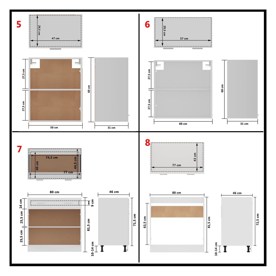 - 1 x Meuble bas d'évier : 80 x 46 x 81,5 cm (L x P x H)