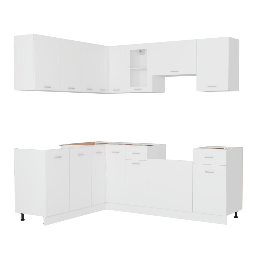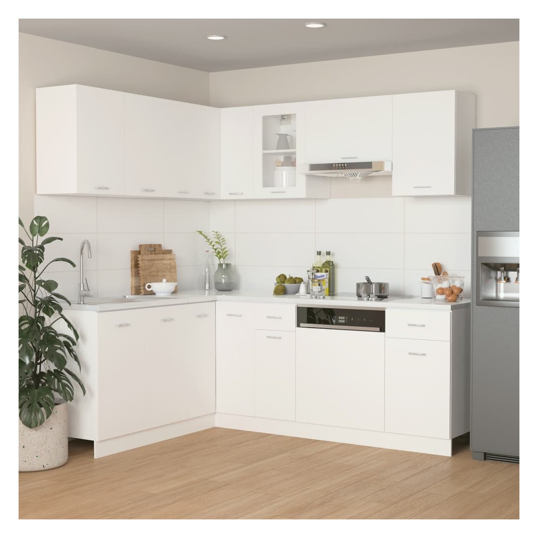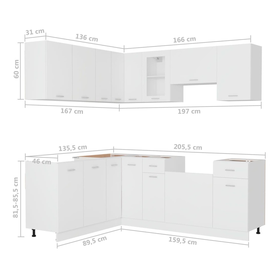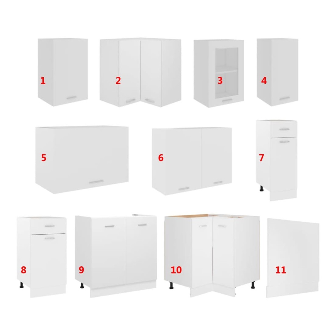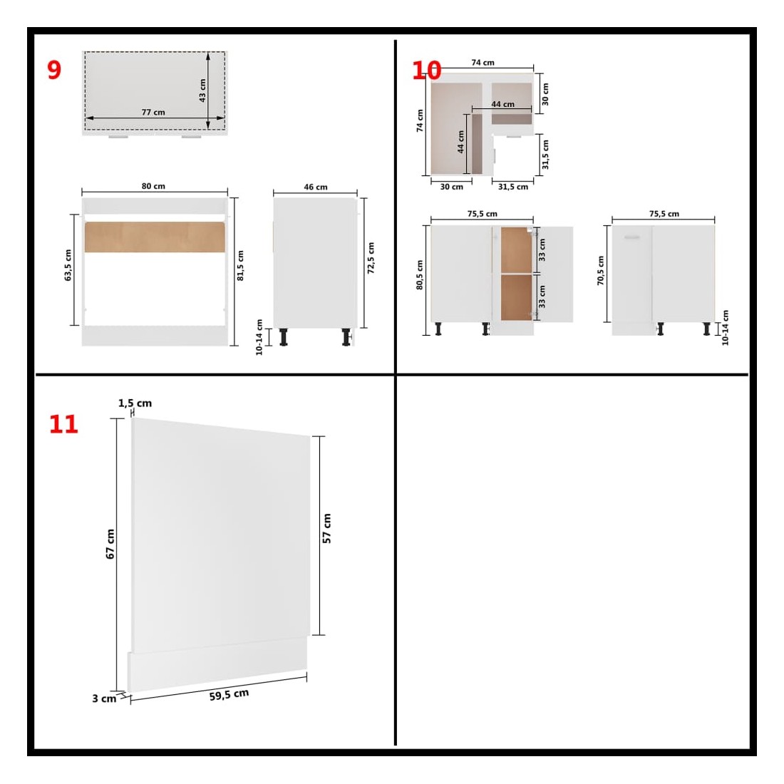 Cet ensemble de meubles de cuisine de 11 pièces, au design élégant, optimise votre espace de cuisine et offre un espace de rangement suffisant pour vos effets personnels ! Ces armoires sont durables et fonctionnelles, ce qui permet de mieux organiser votre cuisine. Elles offrent également suffisamment d’espace pour stocker des bols, des assiettes, des casseroles et d’autres appareils de cuisine. Le panneau de lave-vaisselle présente un design simple et peut protéger le lave-vaisselle. En outre, cet ensemble est facile à nettoyer avec un chiffon humide. Veuillez noter que le plan de travail, le robinet, l'évier et les appareils électriques ne sont pas inclus dans la livraison.
