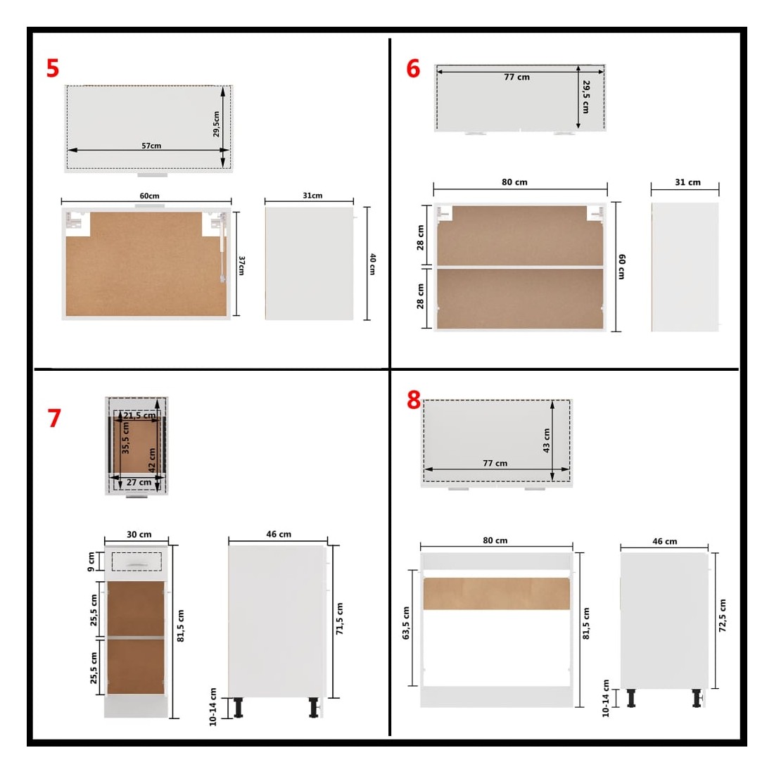 - 1 x Meuble bas d'évier : 80 x 46 x 81,5 cm (L x P x H)
