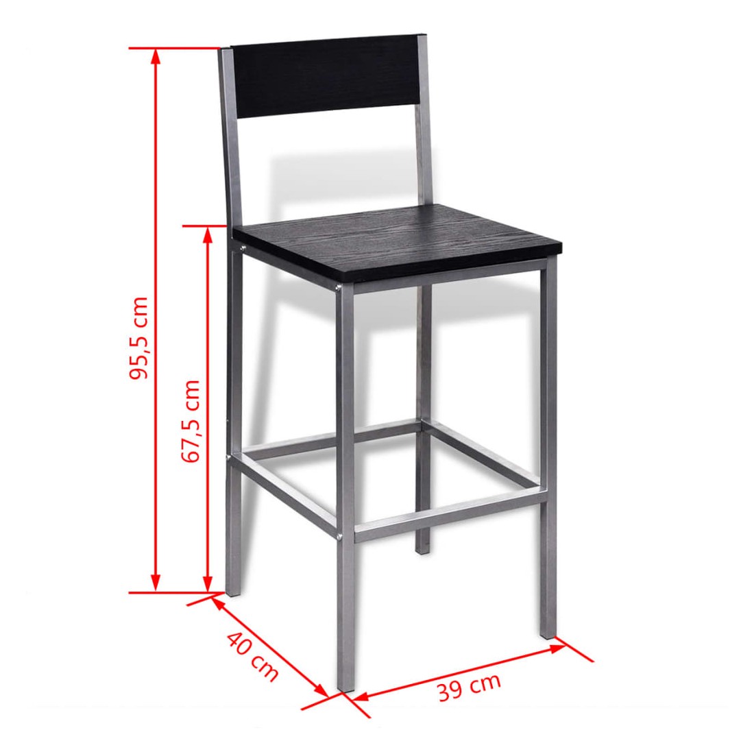 • Taille de la chaise : 39 x 40 x 95,5 cm (l x P x H)