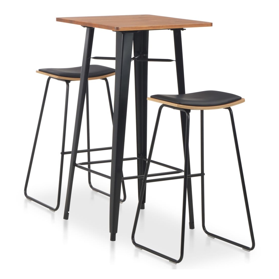 Cet ensemble de bar au design contemporain ajoutera une touche chic à votre cuisine ou votre salle à manger. Les cadres de la table et des tabourets sont en acier revêtu de poudre, ce qui les rend très robustes, durables et faciles à nettoyer avec un chiffon humide. Le dessus de table en bois de pin solide fournit un endroit stable pour vos repas. De plus, les sièges en similicuir ajoutent un confort supplémentaire aux tabourets. La livraison comprend 1 table et 2 tabourets.