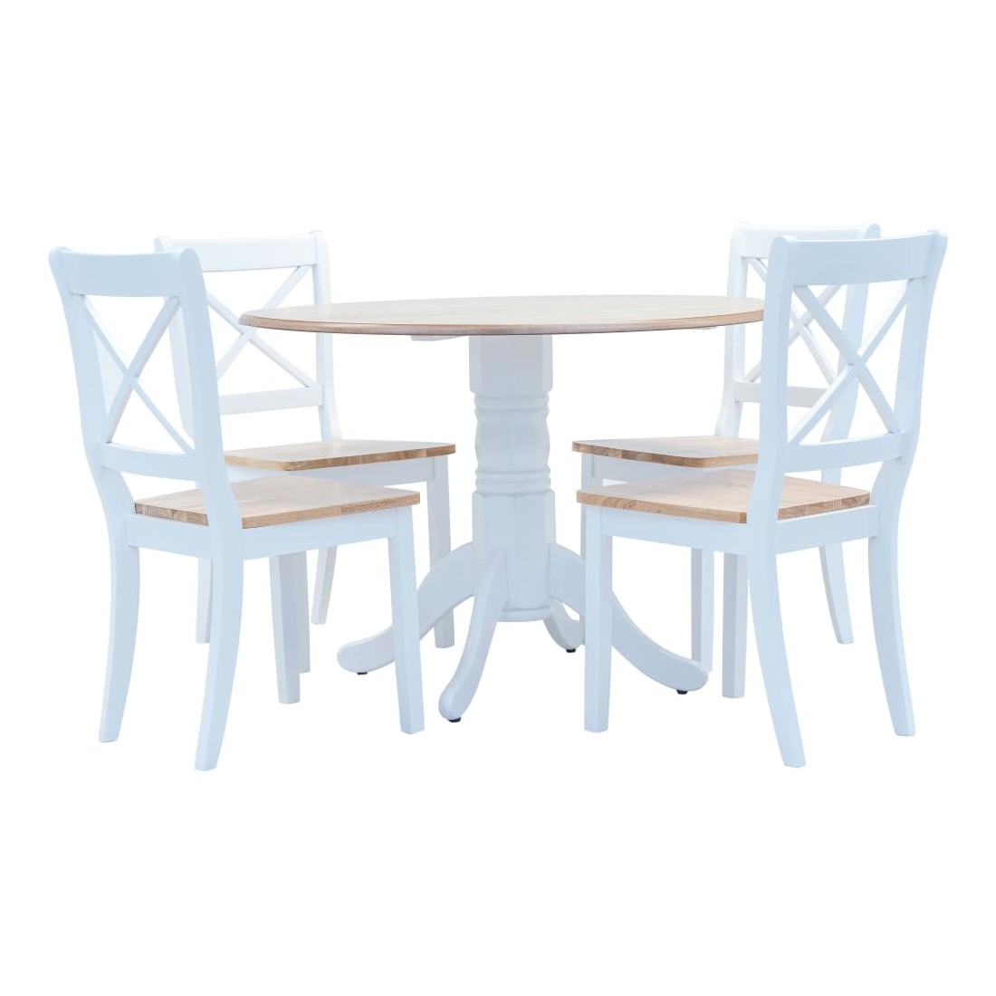 Ensemble de salle à manger 5 pcs Bois d'hévéa Blanc et marron