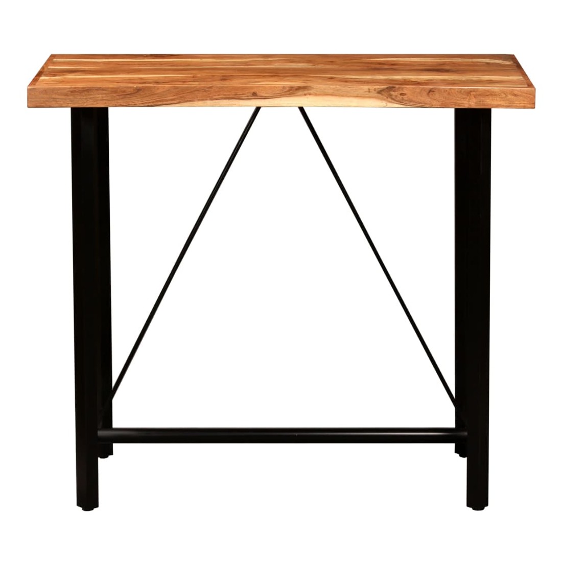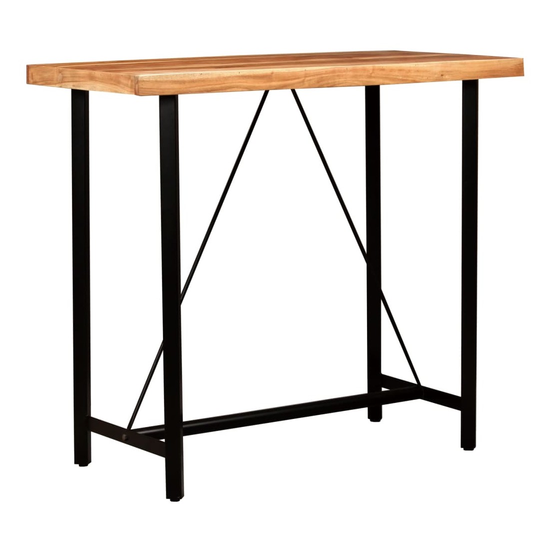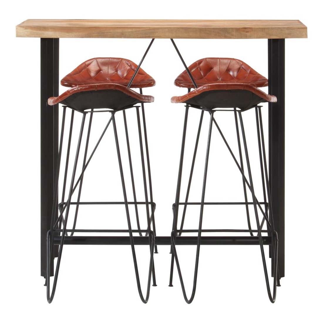 Cet ensemble de bar attrayant a un style industriel et sera un supplément distinctif à n'importe quelle maison, ou à n'importe quel bar ou restaurant. La table de bar est en bois massif. Les pieds en acier fort rendent la table de bar très robuste et durable et ajoutent à son style industriel spectaculaire. L'artisanat parfait garantit que chaque étape du processus est effectuée avec le plus grand soin, que ce soit le polissage ou le laquage. Les chaises de bar au look emblématique sont rembourrées de cuir véritable, douces au toucher et rendant la chaise extrêmement durable. Le siège en cuir de chèvre doux avec de jolies coutures en forme de diamant rend le siège une expérience confortable, tandis que les pieds en fer solides avec repose-pieds font le tabouret stable et durable. L'ens
