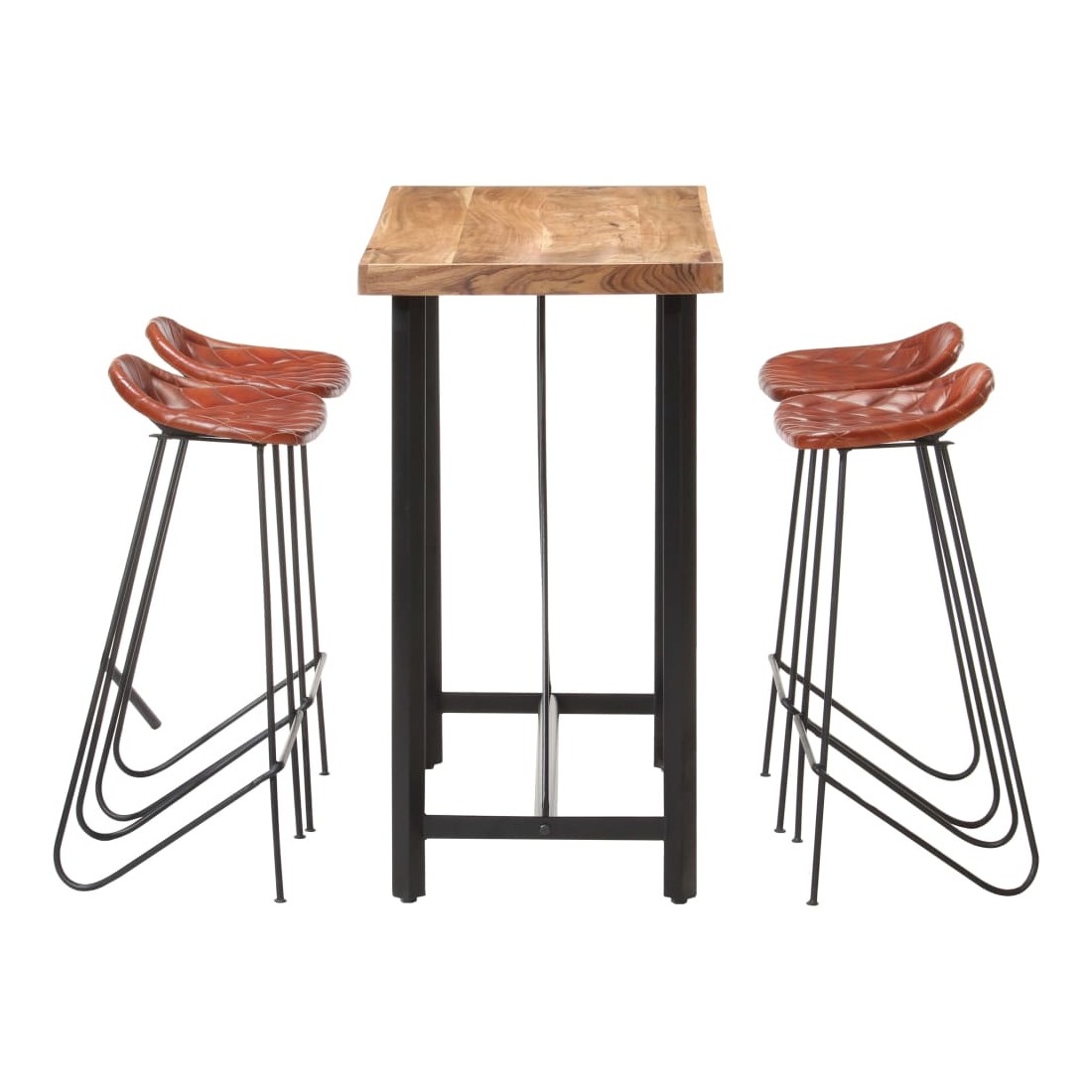 Ensemble de bar 5 pcs Bois solide et cuir véritable