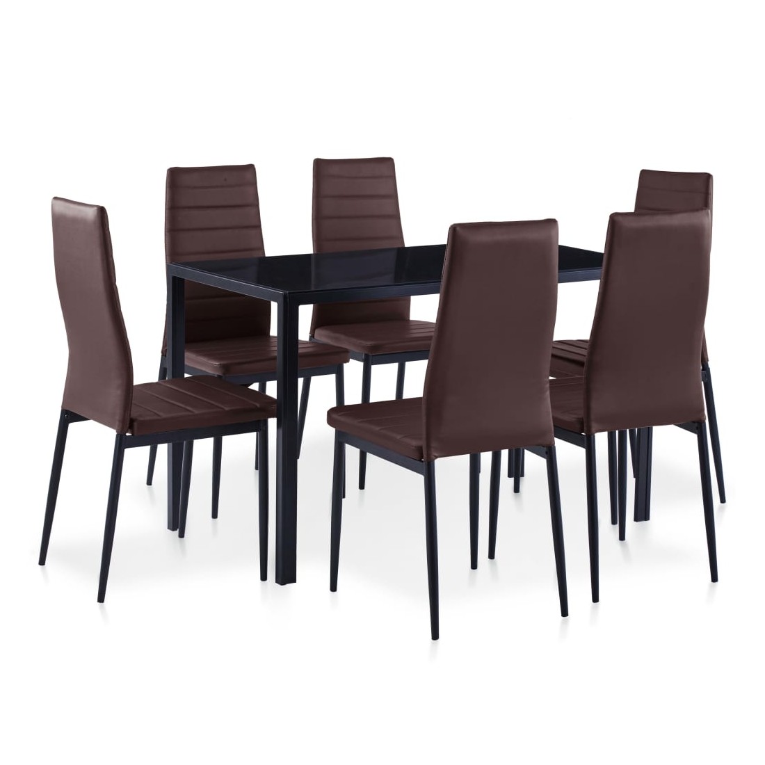 Cet ensemble de table à manger, composé de 7 pièces, a un design moderne et élégant et est parfait pour ceux qui cherchent à ajouter une touche de style à leur intérieur. Le dessus de table est en verre trempé à haute résistance, facile à nettoyer. Chaque chaise est recouverte de similicuir de qualité. Le siège souple et rembourré est très confortable. La livraison comprend 1 table et 6 chaises.