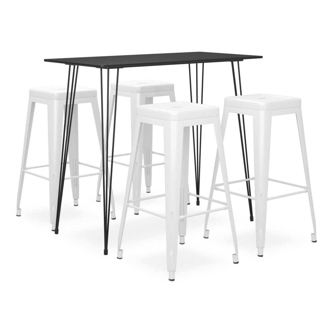 Avec un design moderne et contemporain, notre ensemble de bar est idéal pour les maisons, jardins, bars, pubs ou restaurants modernes. Son design épuré et contemporain complétera toute décoration intérieure. Le dessus de table est en MDF, facile à nettoyer. Le cadre métallique enduit de poudre ajoute à la stabilité et à la robustesse de la table de bar. Les tabourets de pub sont fabriqués en métal avec une finition peinte, ce qui les rend solides et durables. La barre transversale renforcée sous le siège et le repose-pied renforce la stabilité, ce tabouret de comptoir peut être empilé pour un rangement facile, ce qui est idéal pour un espace limité.