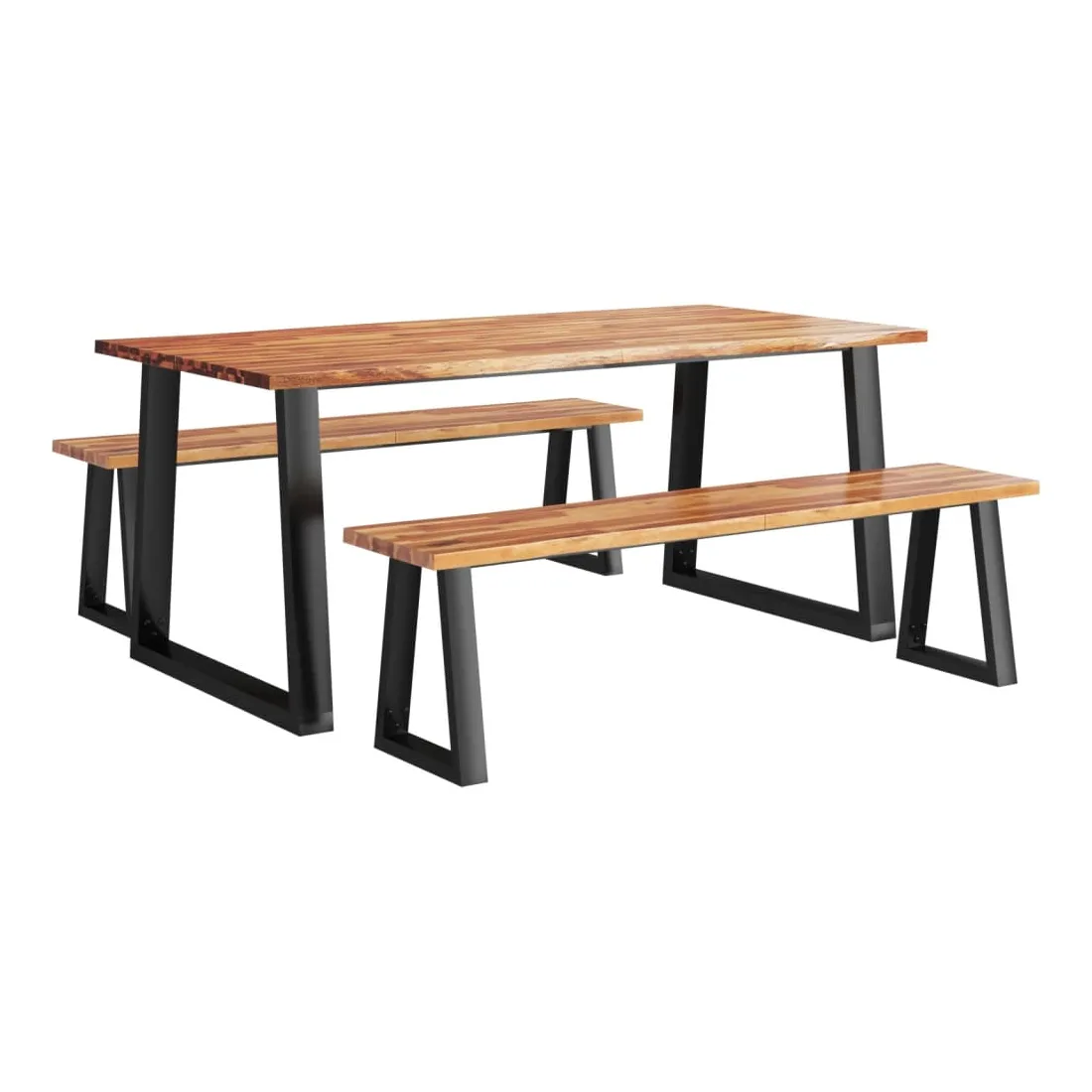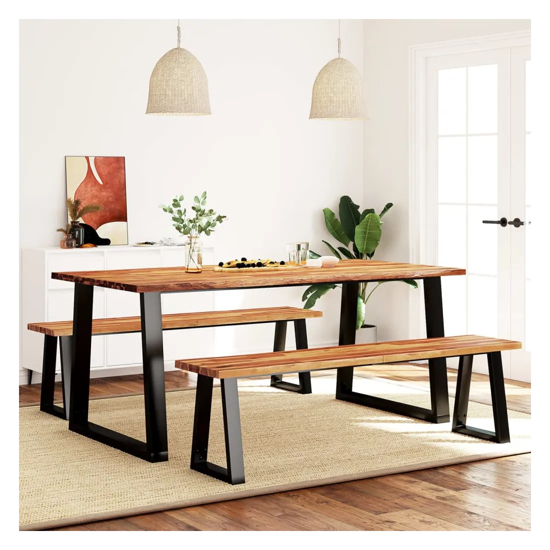 Doté d'un design élégant, cet ensemble à manger deviendra le point central de votre salle à manger ou de votre cuisine. Bois d'acacia massif : le banc et la table à manger sont fabriqués en bois d'acacia massif. Le bois d'acacia massif est un beau matériau naturel. Le bois d'acacia est un bois dur tropical, dense, robuste et durable.Bord vivant : le bord vivant du bois qui suit la forme naturelle de l'arbre augmente la beauté de l'ensemble de meubles.Structure stable : les pieds en forme de U en acier revêtu de poudre ajoutent un style industriel à votre intérieur tout en assurant la stabilité d'ensemble à manger.Dessus de table pratique : le dessus de table robuste de la table de cuisine est parfait pour placer des repas, des boissons et d'autres objets décoratifs.