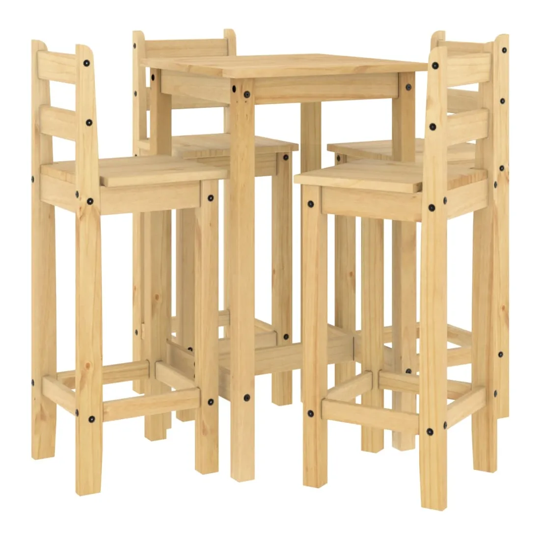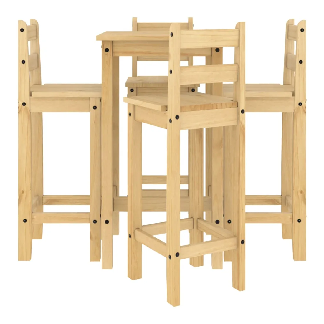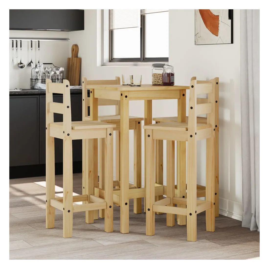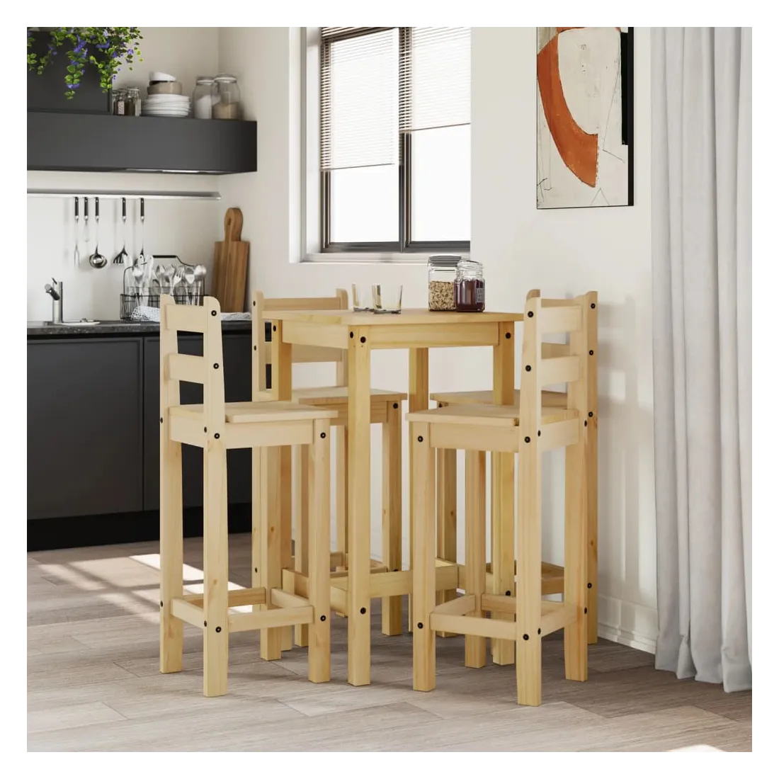 Prenez une gorgée de votre verre de vin préféré ou profitez d'un bon repas avec votre famille et vos amis autour de ce magnifique ensemble de bar en bois ! Bois de pin massif : cet ensemble de bar est fabriqué en bois de pin massif. le bois de pin massif est un matériau naturel magnifique. Le bois de pin a un grain droit et les nœuds donnent au matériau son aspect caractéristique et rustique.Assise confortable : la chaise de bar est conçue avec un dossier et un repose-pieds intégré pour vous offrir une expérience d'assise confortable.Dessus robuste : la table de bar est dotée d'un dessus robuste, parfait pour placer vos boissons, vos aliments et autres objets décoratifs.Nombreuses applications : la table et les chaises de bar présentent un design minimaliste pour s'adapter à n'importe quel décor de votre maison. Elles peuvent être utilisées dans la cuisine, la salle à manger, le salon, etc.