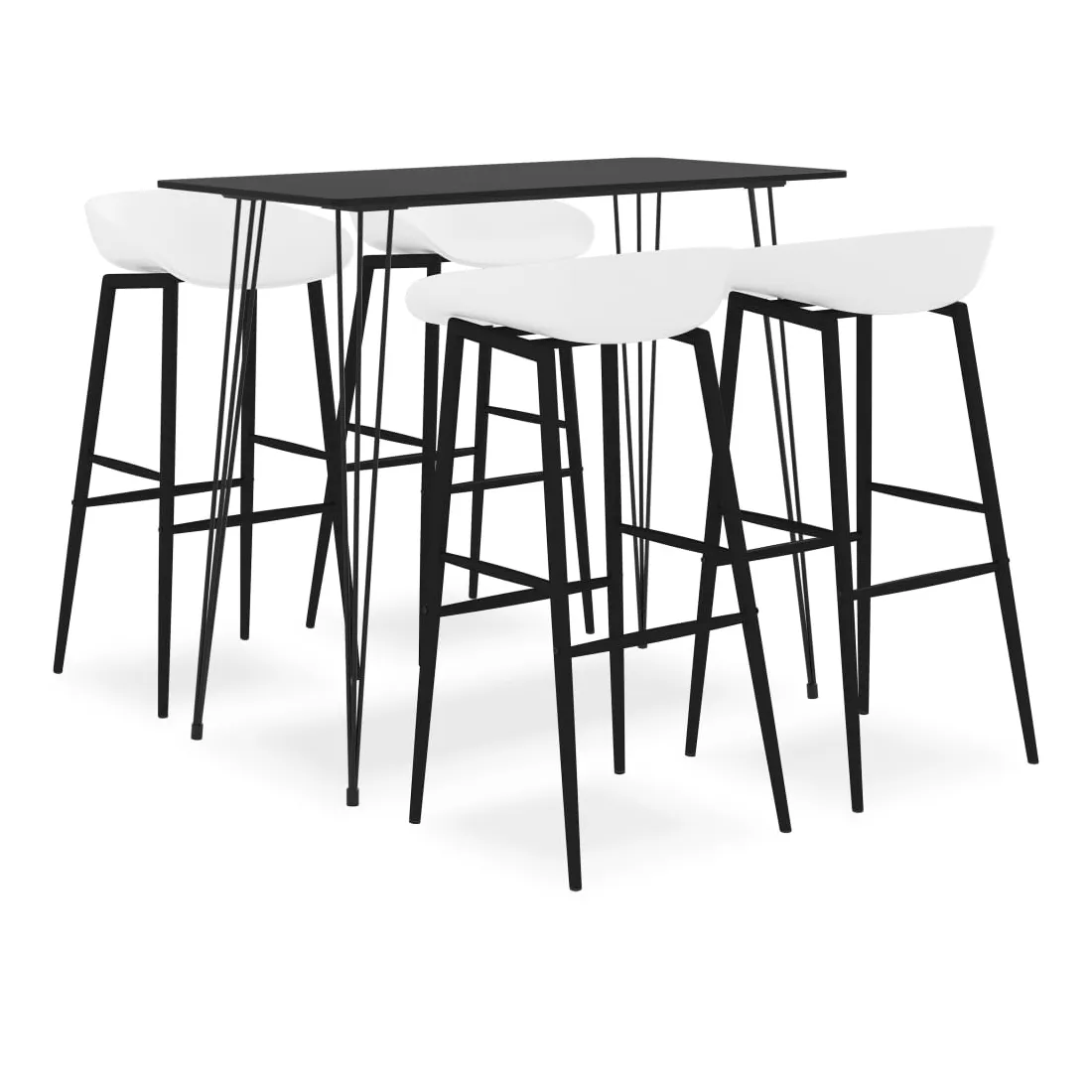 Avec un design moderne et contemporain, notre ensemble de bar est idéal pour les maisons, jardins, bars, pubs ou restaurants modernes. Son design épuré et contemporain complétera toute décoration intérieure. Le dessus de table est en MDF, facile à nettoyer. Le cadre métallique enduit de poudre ajoute à la stabilité et à la robustesse de la table de bar. Ces tabourets de pub ont un siège ergonomique avec un dossier bas intégré. Fabriquées en PP robuste et soutenues par des solides pieds en métal enduit de poudre, ces chaises de comptoir sont robustes et durables.