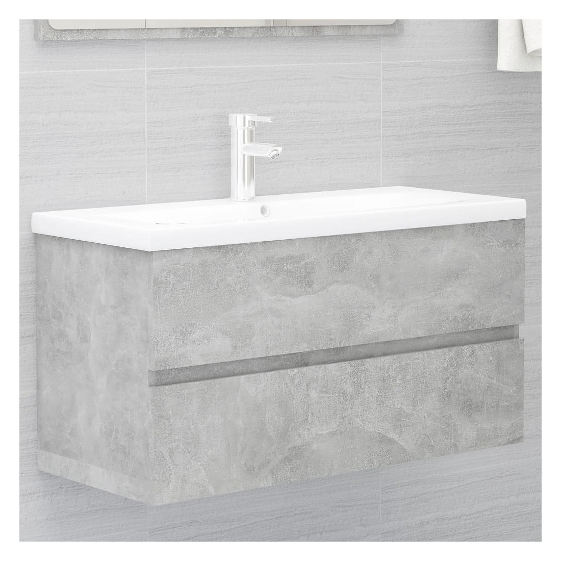 Armoire d'évier et lavabo intégré Gris béton Bois d'ingénierie