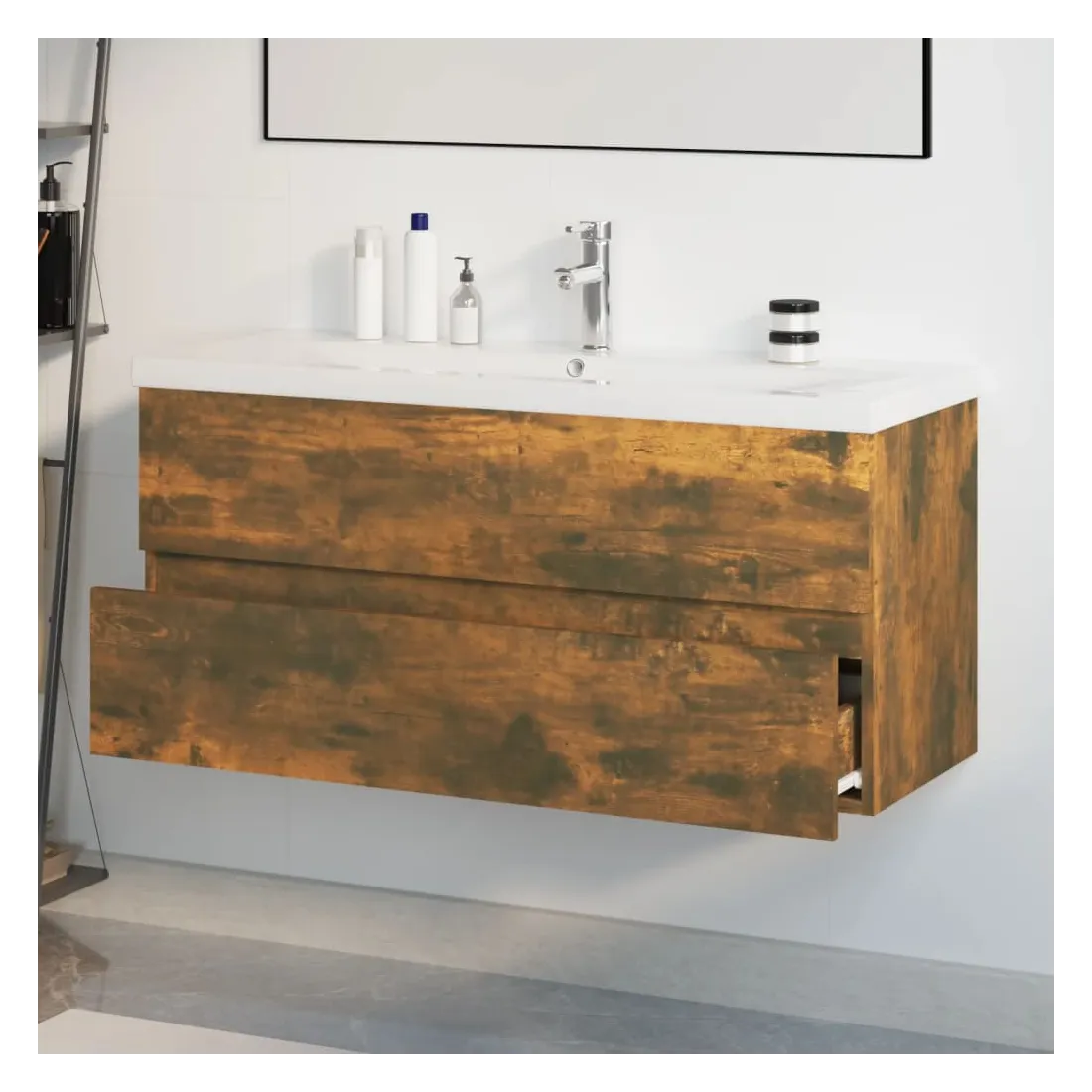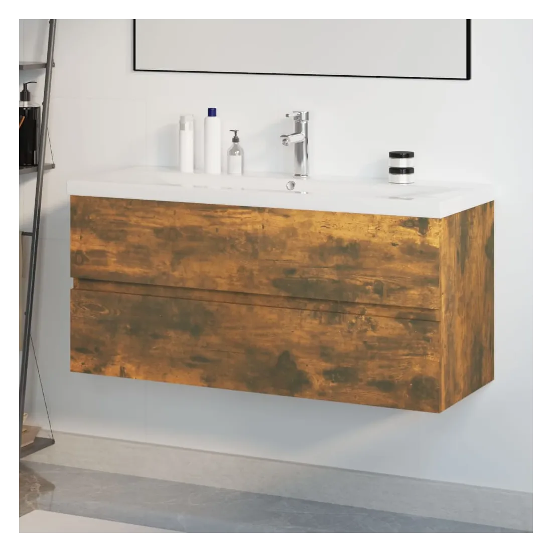 Meuble lavabo avec bassin intégré Chêne fumé Bois d'ingénierie