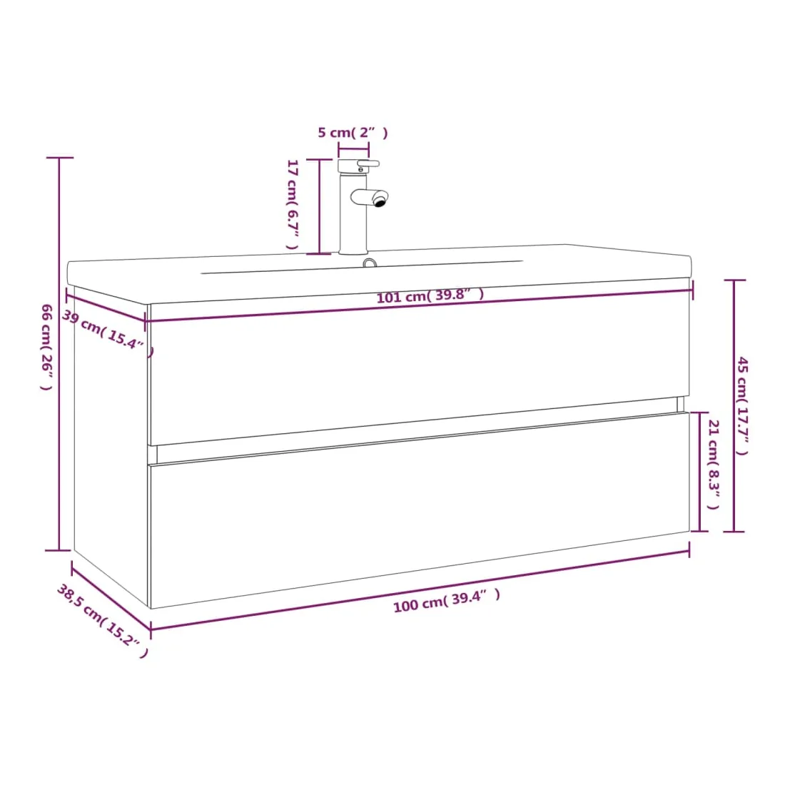 • Dimensions totales : 101 x 39 x 18,5 cm (L x l x H)