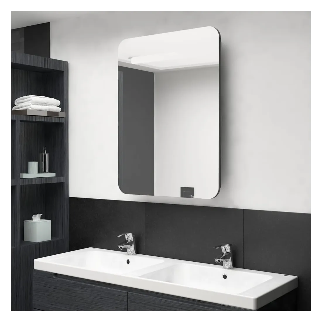 Introduisez une esthétique agréable dans votre salle de bain avec notre armoire à miroir de courtoisie LED ! Notre armoire murale à LED ajoute une touche de style contemporain et une lumière douce et éclairante à toute pièce ! Elle est faite de panneaux MDF de qualité avec une finition en mélamine, garantissant une utilisation à long terme. Avec tube LED intégré, vous pouvez vous voir dans la lumière la plus vraie pour l'application de maquillage, de toilettage et de soins de la peau et il peut illuminer votre chambre, votre visage et votre sourire. De plus, deux étagères à l'intérieur de l'armoire offrent un rangement supplémentaire dans la salle de bain. Elles pourront facilement accueillir vos articles de toilette essentiels et articles de bain tels que savons, shampoing, dentifrice, etc. Élégant et fonctionnel, ce meuble rendra sûrement la conception de votre pièce à l'origine exceptionnelle ! Remarque :Ce produit est doté d'un connecteur USB, mais la source d'alimentation certifiée de USB 5V n'est pas incluse.