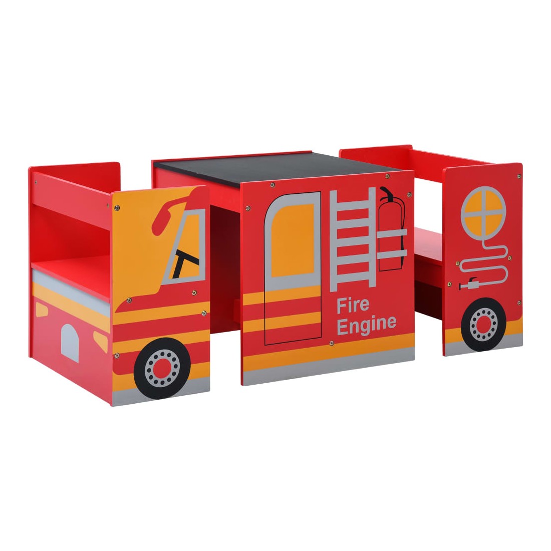 Jeu de table et chaises d'enfants 3 pcs Camion de pompiers Bois
