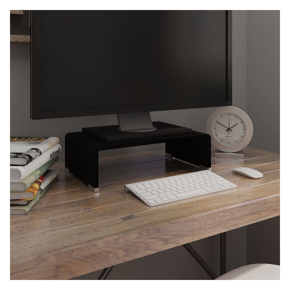 Ce support TV pratique est doté d'une construction en verre trempé. Le design élégant et profilé de ce meuble TV raffiné ajoutera une touche moderne à votre espace de vie. Cette étagère en verre peut être utilisée comme support TV ou support pour votre moniteur d'ordinateur, téléviseur, ordinateur portable et autres appareils multimédia. Avec une étagère en verre qui soulève le moniteur, vous aurez une meilleure vision de l'écran en étant confortablement assis, ce qui permet à réduire la tension et l'inconfort sur votre cou ou dos. L'espace en dessous peut accueillir votre lecteur de DVD, console de jeux, appareil de diffusion en continu, récepteurs et des supports média. Le cadre en verre est trempé pour ajouter de la résistance et de la sécurité. La surface lisse est facile à nettoyer avec seulement un chiffon humide.