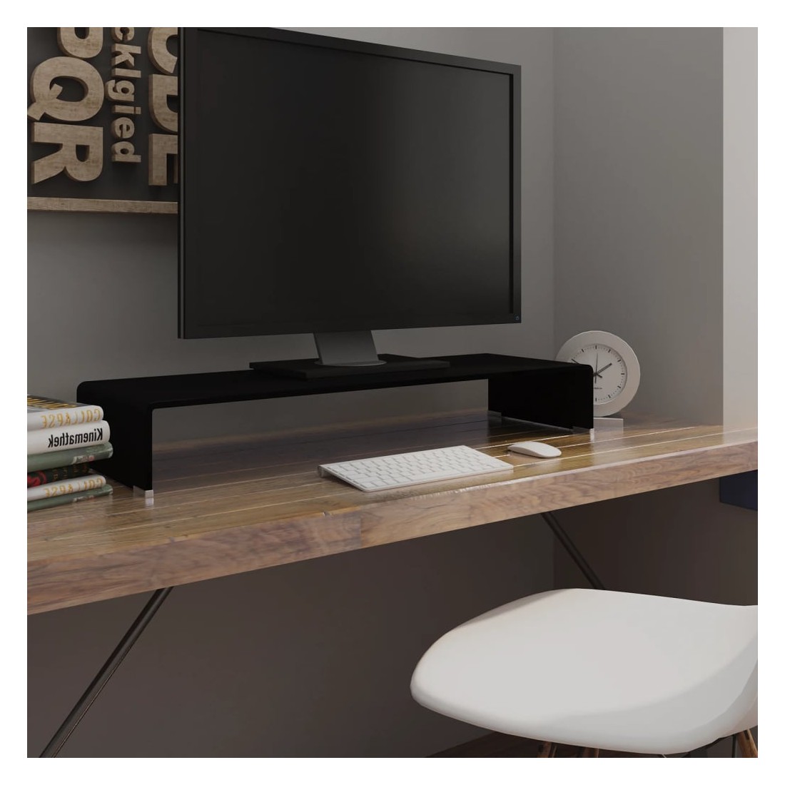 Ce support TV pratique est doté d'une construction en verre trempé. Le design élégant et profilé de ce meuble TV raffiné ajoutera une touche moderne à votre espace de vie. Cette étagère en verre peut être utilisée comme support TV ou support pour votre moniteur d'ordinateur, téléviseur, ordinateur portable et autres appareils multimédia. Avec une étagère en verre qui soulève le moniteur, vous aurez une meilleure vision de l'écran en étant confortablement assis, ce qui permet à réduire la tension et l'inconfort sur votre cou ou dos. L'espace en dessous peut accueillir votre lecteur de DVD, console de jeux, appareil de diffusion en continu, récepteurs et des supports média. Le cadre en verre est trempé pour ajouter de la résistance et de la sécurité. La surface lisse est facile à nettoye