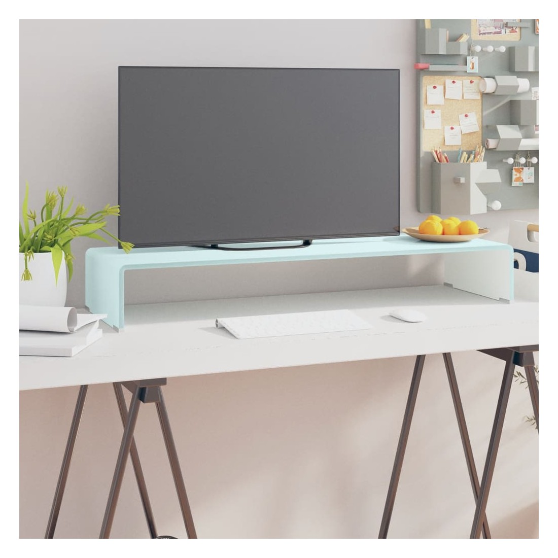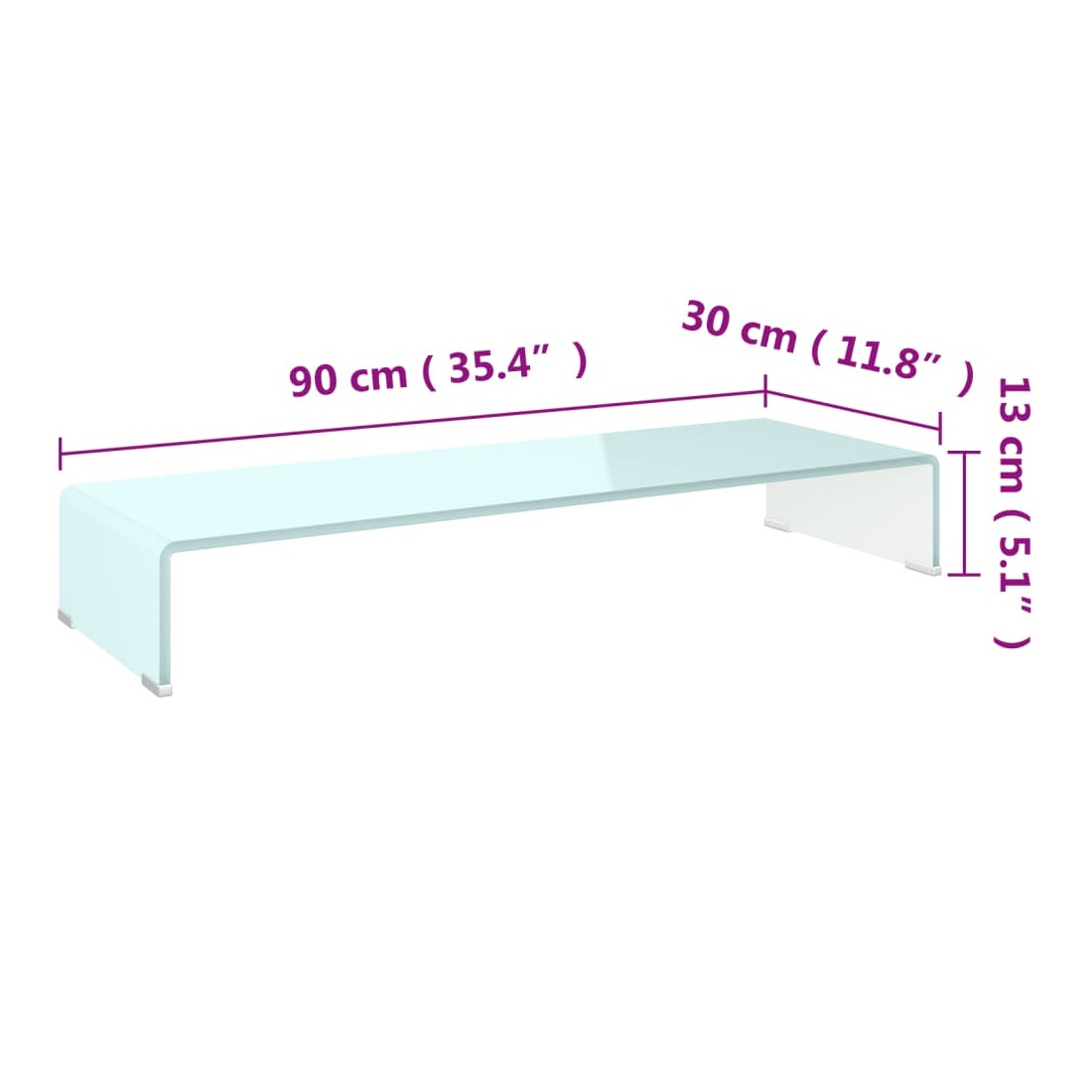 Ce support TV pratique est doté d'une construction en verre trempé. Le design élégant et profilé de ce meuble TV raffiné ajoutera une touche moderne à votre espace de vie. Cette étagère en verre peut être utilisée comme support TV ou support pour votre moniteur d'ordinateur, téléviseur, ordinateur portable et autres appareils multimédia. Avec une étagère en verre qui soulève le moniteur, vous aurez une meilleure vision de l'écran en étant confortablement assis, ce qui permet à réduire la tension et l'inconfort sur votre cou ou dos. L'espace en dessous peut accueillir votre lecteur de DVD, console de jeux, appareil de diffusion en continu, récepteurs et des supports média. Le cadre en verre est trempé pour ajouter de la résistance et de la sécurité. La surface lisse est facile à nettoye