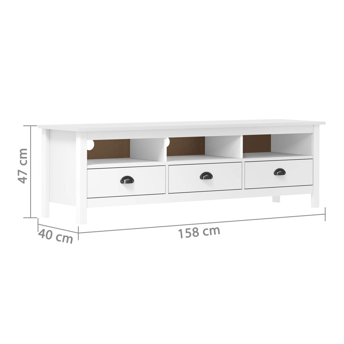 Meuble TV Hill Range Blanc 158x40x47 cm Bois de pin solide