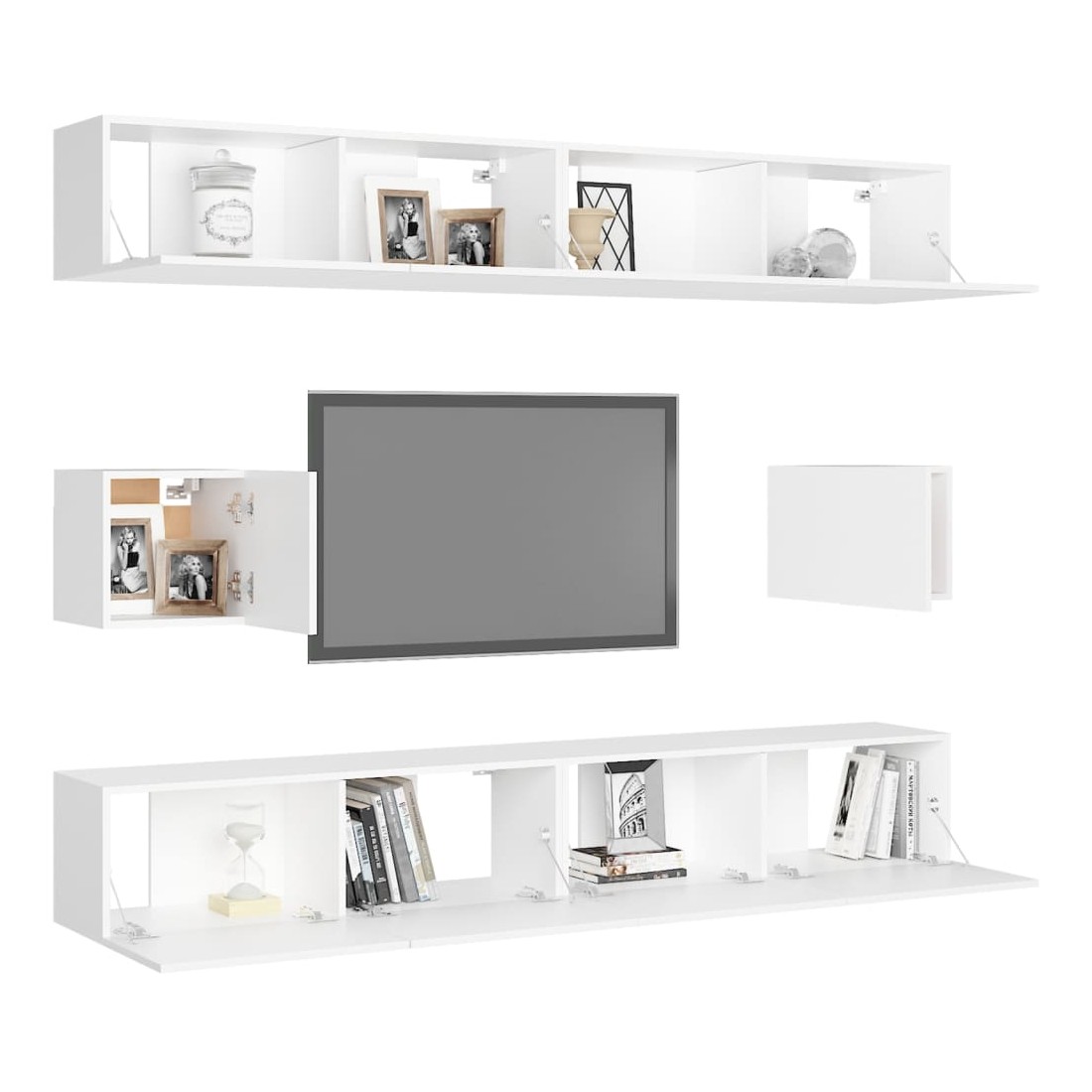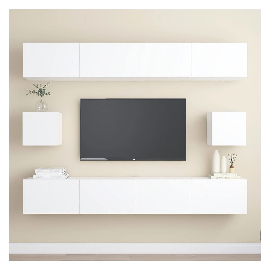 Équipé d'un grand espace de rangement pour organiser divers articles, cet ensemble de meuble TV suspendu sera certainement un supplément pratique et accrocheur dans votre maison. Le meuble TV est fixé au mur, ce qui en fait un supplément intemporel à votre maison. Cet ensemble d’armoire HiFi est idéal pour afficher ou garder bien organisés ou à portée de main tous les articles préférés. De plus, l’ensemble d’armoire stéréo est facile à nettoyer avec un chiffon humide.