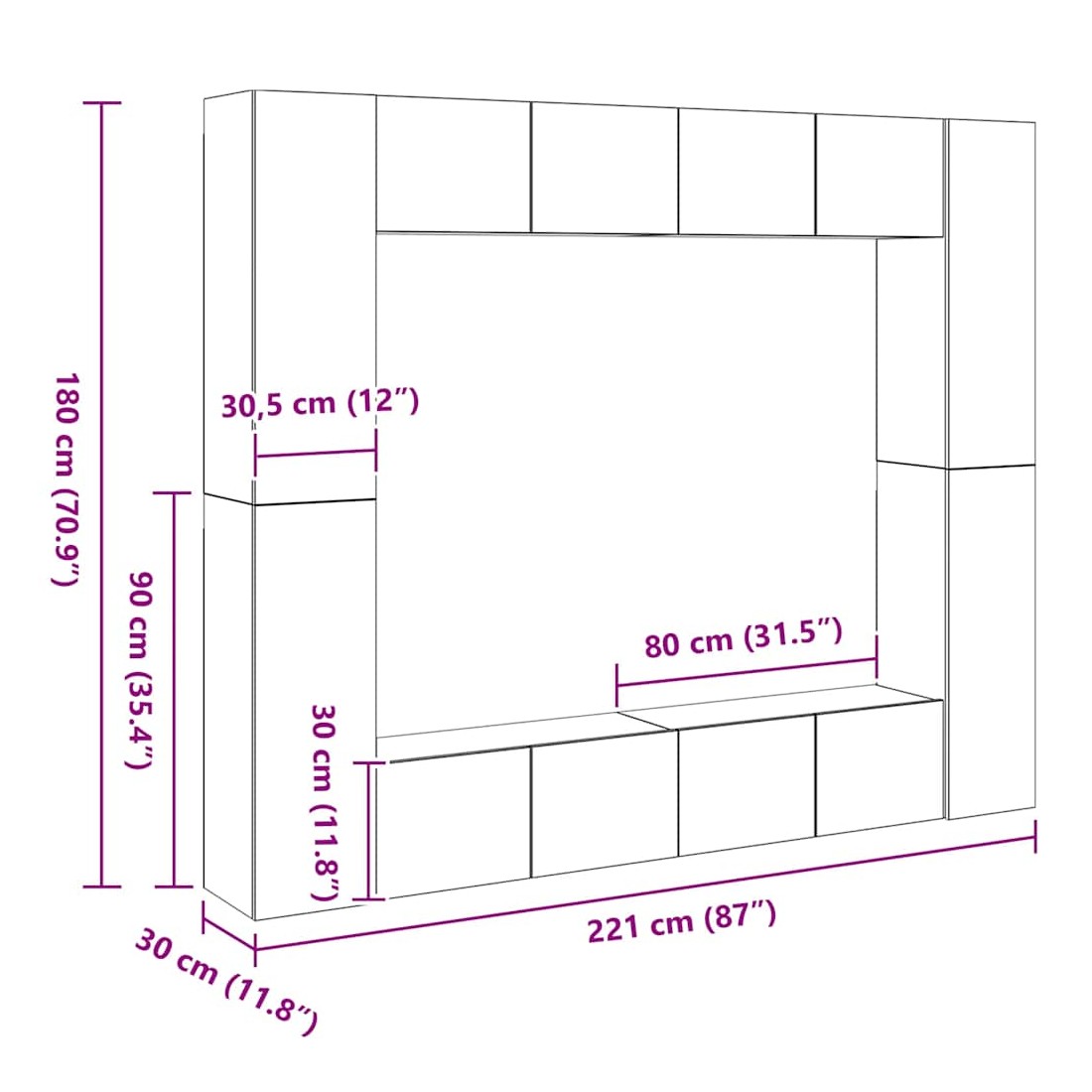 - Dimensions (M) : 30,5 x 30 x 90 cm (l x P x H)