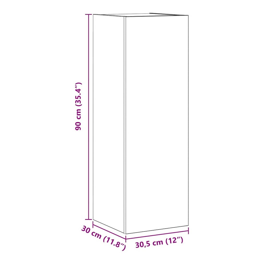 - Dimensions (M) : 30,5 x 30 x 90 cm (l x P x H)