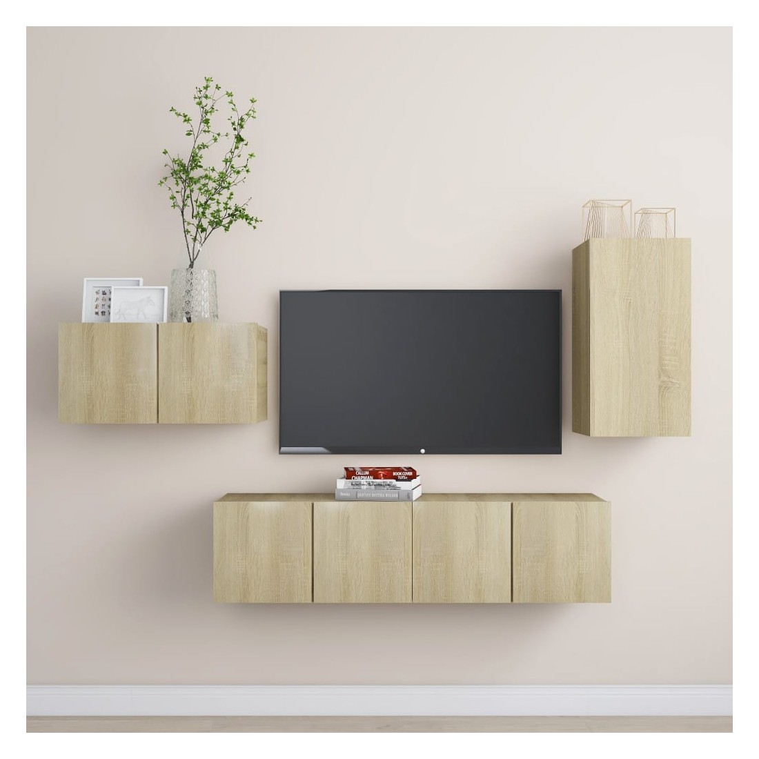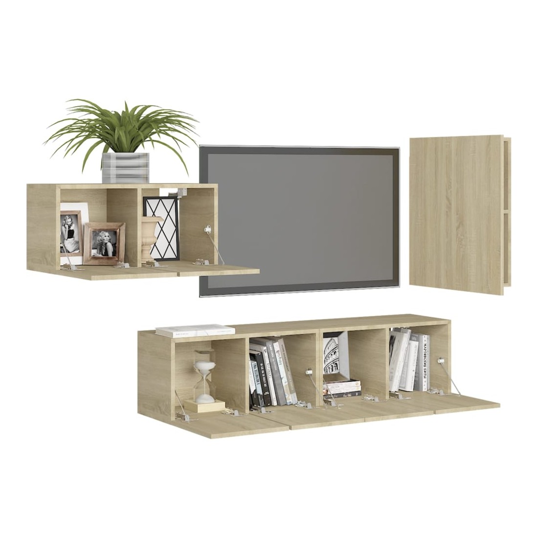 Équipé d'un grand espace de rangement pour organiser divers articles, cet ensemble de meuble TV suspendu sera certainement un supplément pratique et accrocheur dans votre maison. Le meuble TV est fixé au mur, ce qui en fait un supplément intemporel à votre maison. Cet ensemble d’armoire HiFi est idéal pour afficher ou garder bien organisés ou à portée de main tous les articles préférés. De plus, l’ensemble d’armoire stéréo est facile à nettoyer avec un chiffon humide.