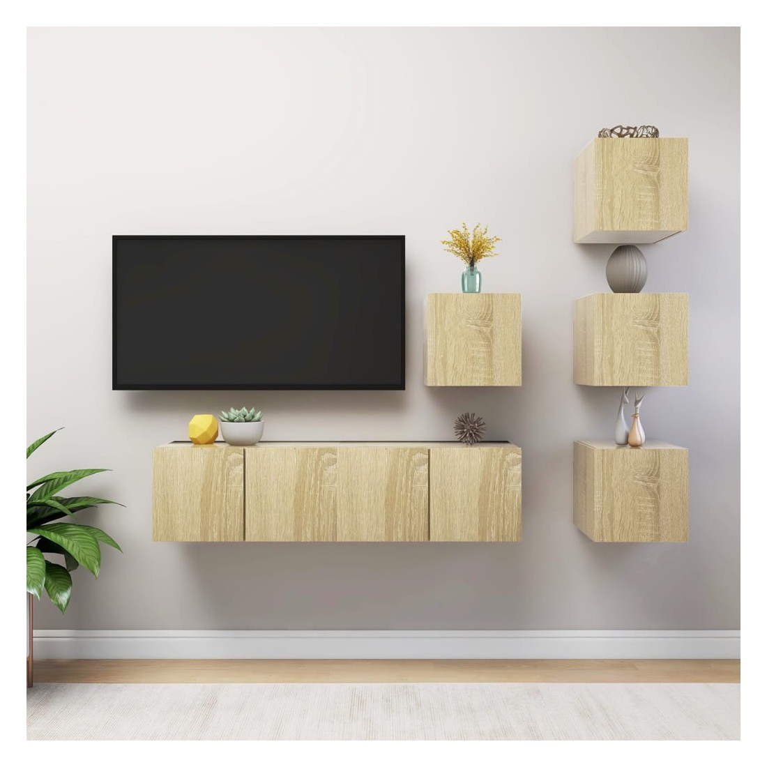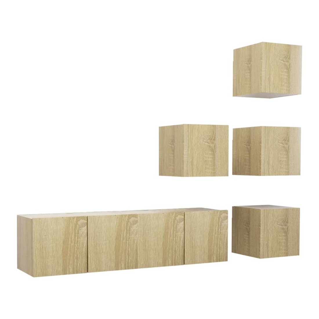 Ce meuble TV, doté d'un design moderne et d'un grand espace de rangement, devient un point de mire de votre salon. Cet ensemble de meuble TV suspendu est fabriqué en bois d'ingénierie, ce qui le rend robuste et durable. L'ensemble est fixé au mur, ce qui en fait un supplément intemporel à votre maison. L’ensemble dispose de plusieurs compartiments qui en font un endroit idéal pour stocker tous vos magazines, DVD ou autres articles. Cet ensemble de meuble Hifi est facile à nettoyer avec un chiffon humide.