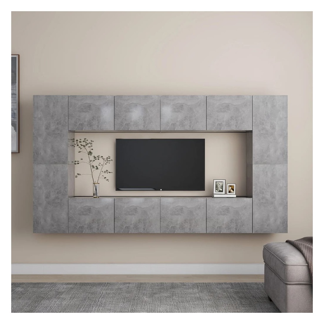 Ensemble de meubles TV 8 pcs Gris béton Bois d'ingénierie