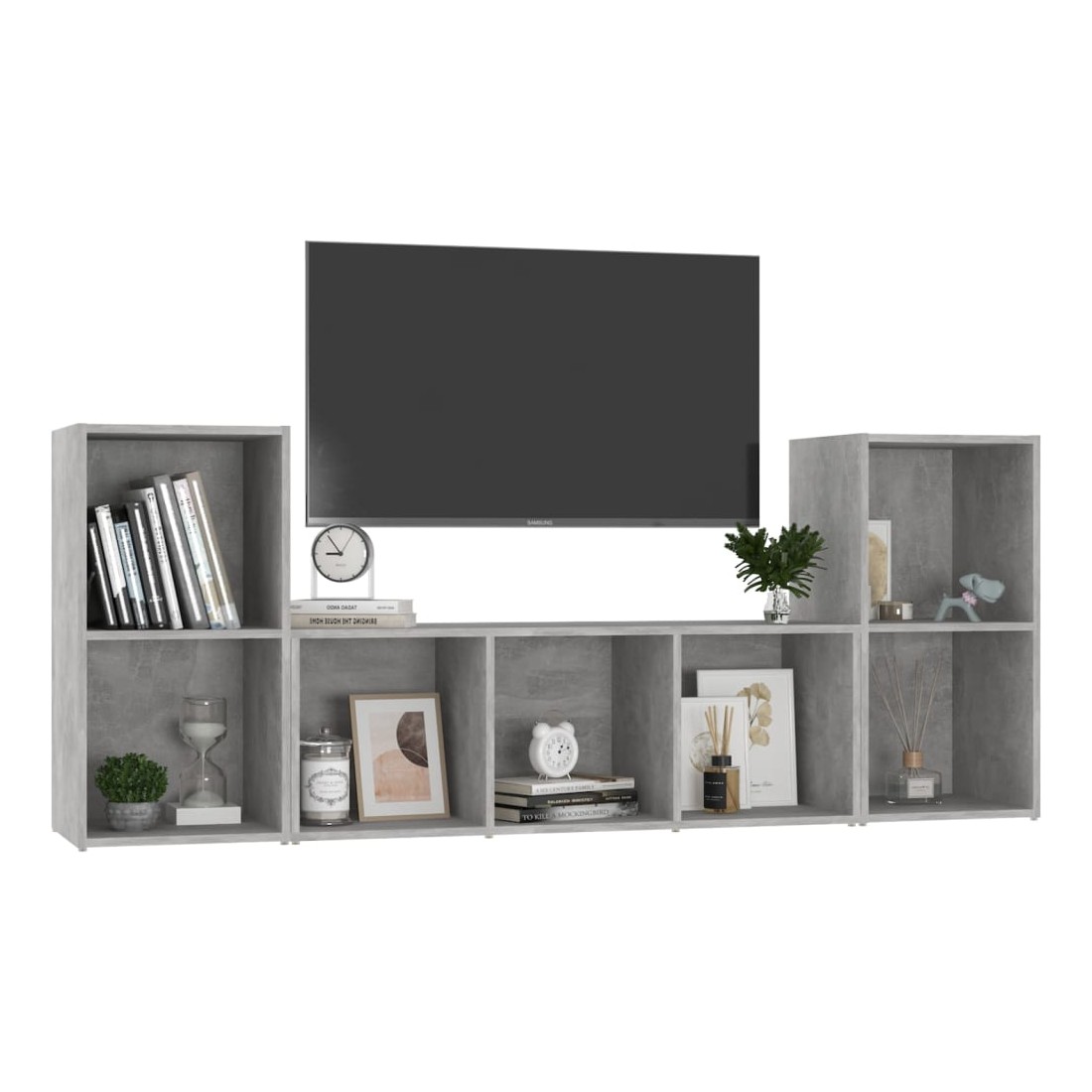 Cet ensemble de meuble TV classique est certainement conçu pour être un point de mire de votre pièce avec un design tendance mais pratique. Cet ensemble de meuble TV est équipé d'un grand espace de rangement pour garder vos magazines, livres, DVD et appareils multimédia bien organisés et à portée de main. Chaque meuble TV peut être placé horizontalement ou verticalement, ce qui en fait un complément parfait à votre espace de vie actuel. De plus, l'ensemble de meuble HiFi est facile à nettoyer avec un chiffon humide.