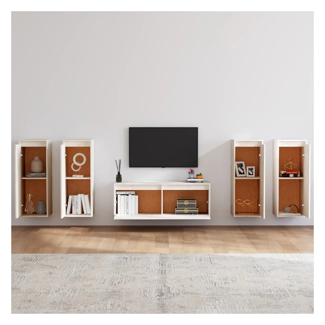 Ces meubles TV classiques sont conçus pour être le point de mire de votre pièce avec un design à la fois tendance et pratique. Ces armoires suspendues sont fabriquées en bois de pin massif, ce qui garantit leur solidité, durabilité et longévité. Les unités murales sont l'endroit idéal pour ranger des objets tels que des livres, des objets de collection, des bibelots, etc. Elles transforment un mur vide en une caractéristique de conception. De plus, les armoires flottantes sont faciles à nettoyer avec un chiffon humide. Veuillez noter : Les vis et les chevilles pour l'intérieur du mur ne sont pas incluses. Recherchez et utilisez des vis et des chevilles adaptées à vos murs. Si vous n'êtes pas sûr, demandez conseil à un professionnel. Lisez et suivez attentivement chaque étape de l'instruction.