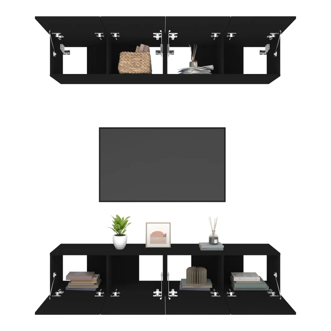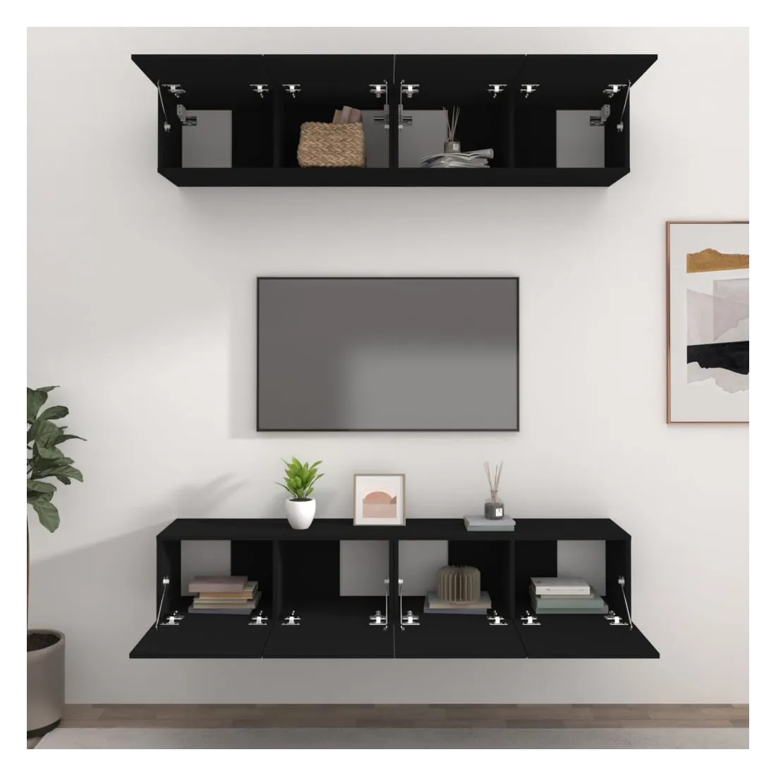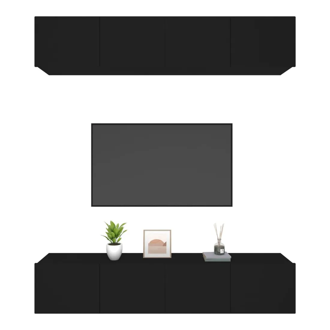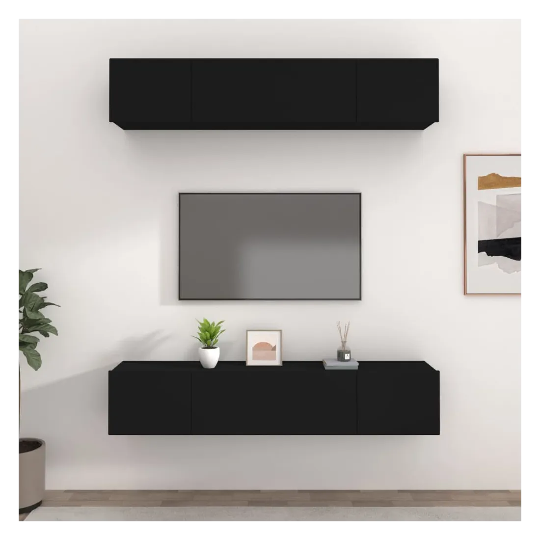 Ces meubles TV présentent un design élégant et classique. Ils peuvent être facilement fixés au mur, ce qui en font une extension décorative et pratique de votre décor. Bois d'ingénierie robuste : le bois d'ingénierie est d'une qualité exceptionnelle avec une surface lisse et présente également résistance, stabilité et résistance à l'humidité.Grand espace de rangement : chaque support TV dispose de 2 compartiments qui en font un endroit idéal pour ranger tous vos magazines, DVD ou autres objets.Design mural : le meuble TV ne prend pas de place au sol. Vous pouvez l'accrocher au mur facilement.Portes pratiques : les deux portes de l'armoire média gardent votre espace sans encombrement en cachant de petits articles essentiels derrière les portes. La porte dispose également d’un design déroulant, ce qui facilite l’obtention d’articles. Remarque :Les vis et les chevilles pour l'intérieur du mur ne sont pas incluses. Recherchez et utilisez des vis et des chevilles adaptées à vos murs. Si vous n'êtes pas sûr, demandez conseil à un professionnel. Lisez et suivez attentivement chaque étape des instructions.Chaque produit est livré avec un manuel de montage dans la boîte pour un montage facile.