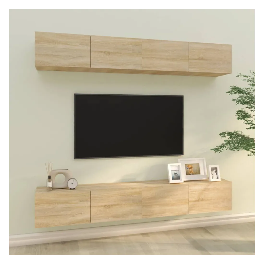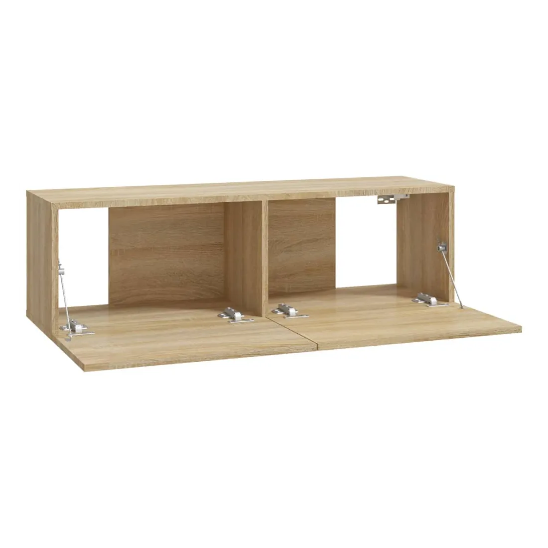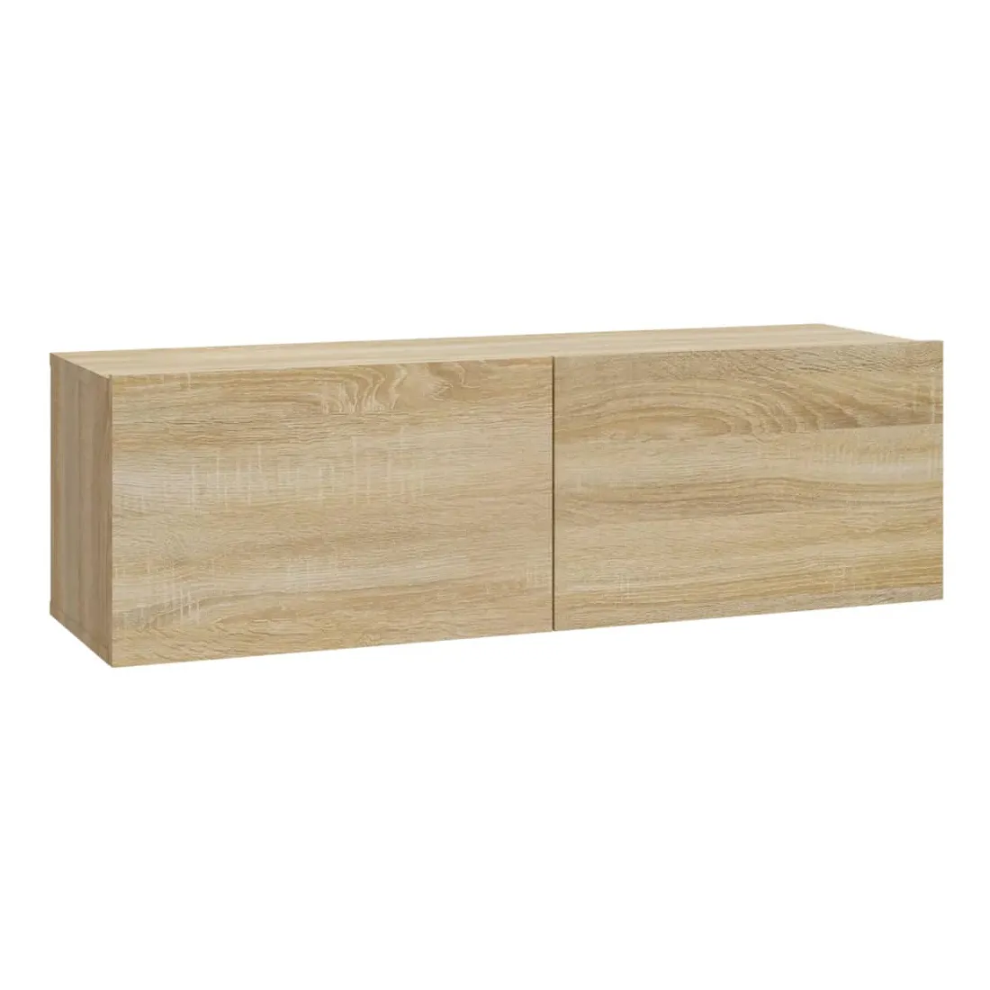 Ces meubles TV muraux présentent un design élégant et classique. Ils peuvent être facilement fixés au mur, ce qui en fait une extension décorative et pratique de votre décor. Bois d'ingénierie robuste : le bois d'ingénierie est d'une qualité exceptionnelle avec une surface lisse et présente également résistance, stabilité et résistance à l'humidité. Fabriqués en bois d'ingénierie, ces meubles TV sont faciles à nettoyer.Grand espace de rangement : chaque support TV dispose de 2 compartiments qui en font un endroit idéal pour ranger tous vos magazines, DVD ou autres objets.Design mural : ces meubles TV peuvent être fixés au mur pour ajouter de l'espace de stockage supplémentaire. De cette façon, vous pouvez maximiser votre espace au sol et garder la zone propre.Portes pratiques : les deux portes de l'armoire média gardent votre espace sans encombrement en cachant de petits articles essentiels derrière les portes. De plus, la porte présente un design rabattable, ce qui facilite l'obtention d'articles. Remarque :Les vis et les chevilles pour l'intérieur du mur ne sont pas incluses. Recherchez et utilisez des vis et des chevilles adaptées à vos murs. Si vous n'êtes pas sûr, demandez conseil à un professionnel. Lisez et suivez attentivement chaque étape des instructions.Chaque produit est livré avec un manuel de montage dans la boîte pour un montage facile.
