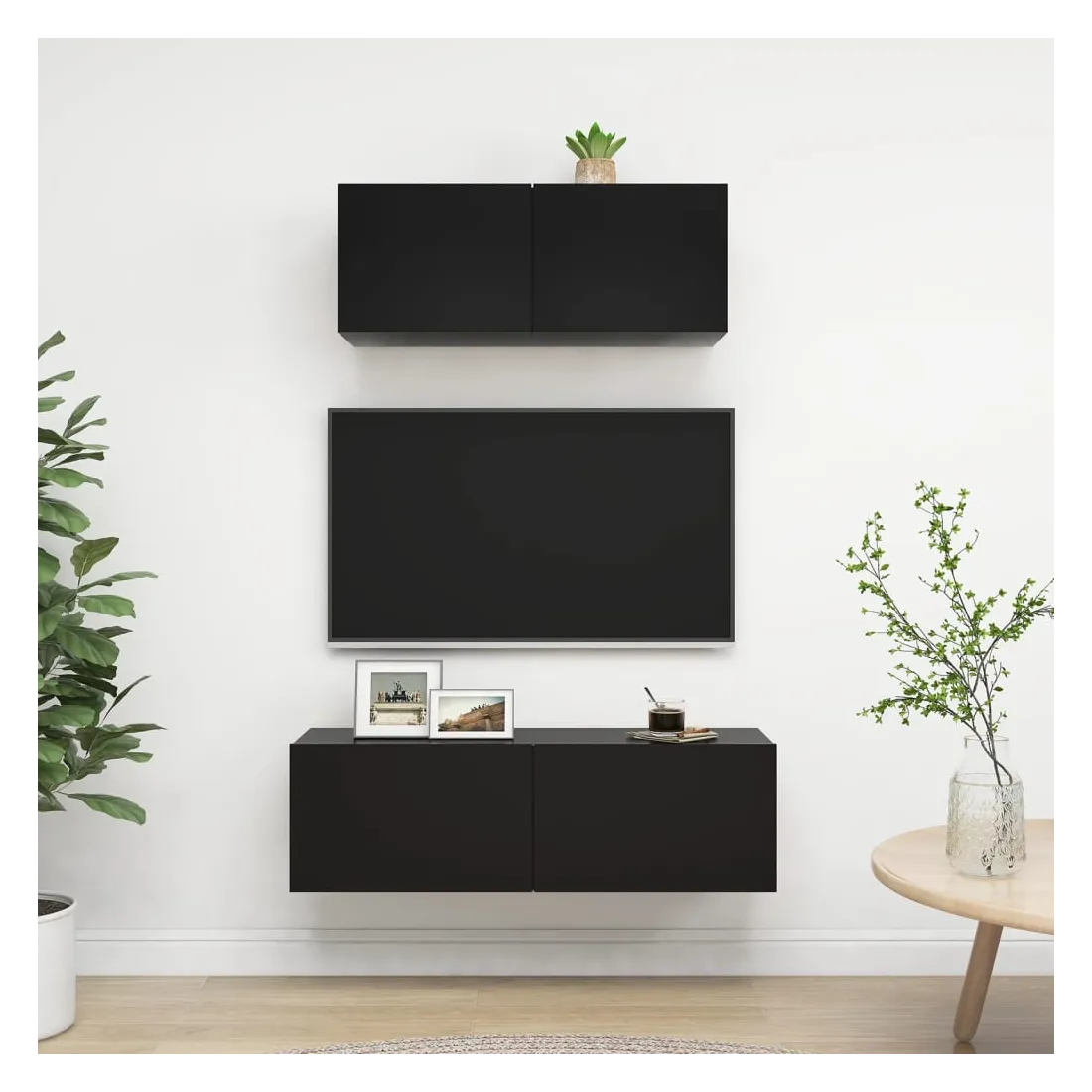 Équipé d'un grand espace de rangement pour organiser divers articles, cet ensemble de meuble TV suspendu sera certainement un supplément pratique et accrocheur dans votre maison. Le meuble TV est fixé au mur, ce qui en fait un supplément intemporel à votre maison. Cet ensemble d’armoire HiFi est idéal pour afficher ou garder bien organisés ou à portée de main tous les articles préférés. De plus, l’ensemble d’armoire stéréo est facile à nettoyer avec un chiffon humide.