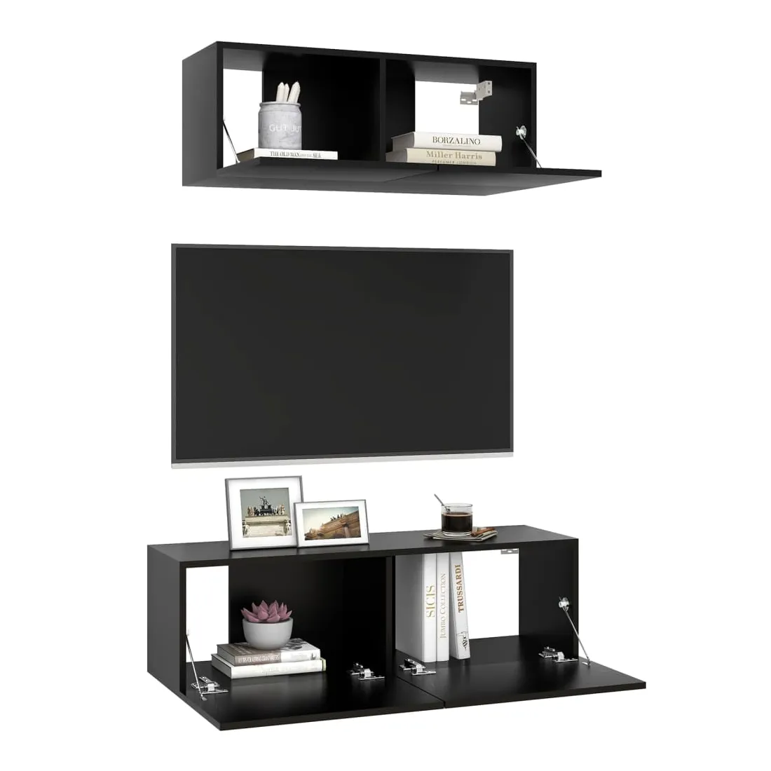 Ensemble de meuble TV 2 pcs Noir Bois d'ingénierie
