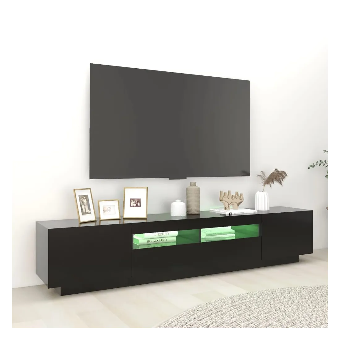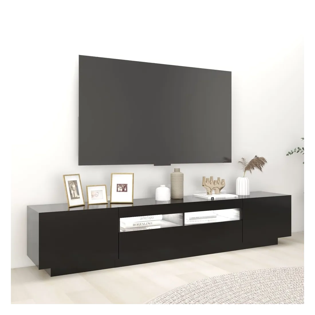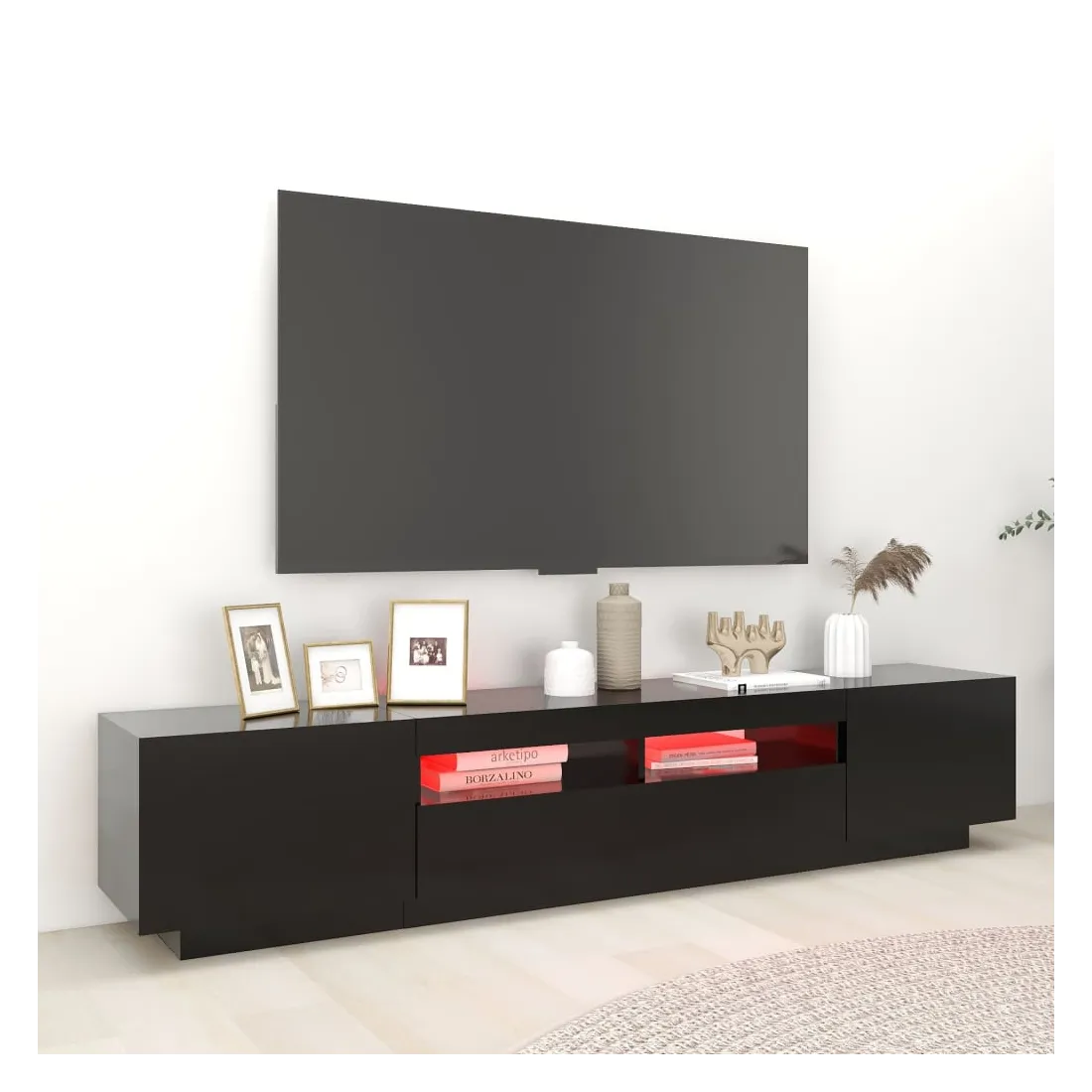 Meuble TV avec lumières LED Noir 200x35x40 cm