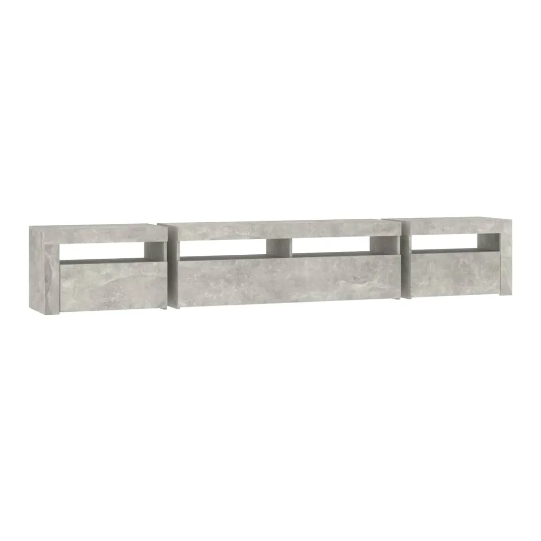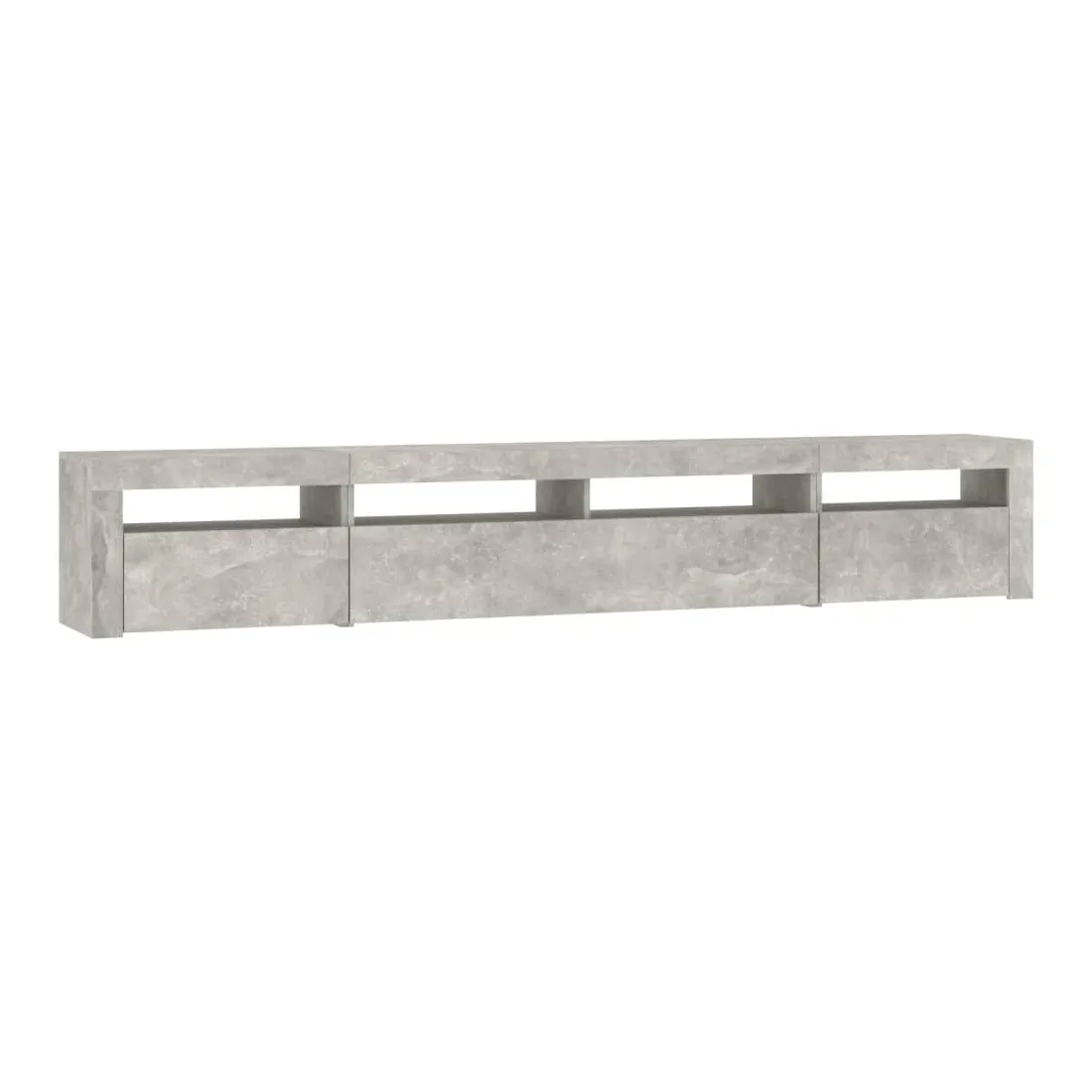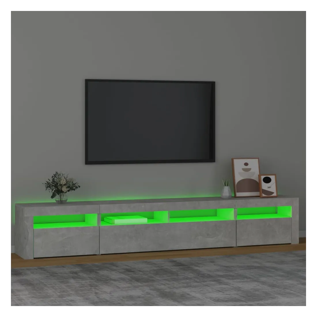 Avec un design à la fois tendance et pratique, ce meuble TV avec éclairage LED deviendra certainement un point central de votre pièce. Matériau pratique : le bois d'ingénierie est d'une qualité exceptionnelle avec une surface lisse et présente également résistance, stabilité et résistance à l'humidité.Lumières LED colorées : le meuble TV est doté de lumières LED RVB, qui ont différents menus pour changer la couleur des lumières et laisser la couleur s'ajuster automatiquement. Les lumières LED soulignent l'aspect moderne et contribuent à la sensation de tendance.Grand espace de rangement : le meuble TV offre un grand espace de rangement pour garder vos magazines, livres, télécommandes et autres petits objets bien organisés et à portée de main.Fonction d'affichage : le dessus robuste du meuble média est idéal pour exposer des objets décoratifs, des cadres photo et des plantes en pot. Remarque :Ce produit est doté d'un connecteur USB, mais la source d'alimentation certifiée de USB 5V n'est pas incluse.Chaque produit est livré avec un manuel de montage dans la boîte pour un montage facile.